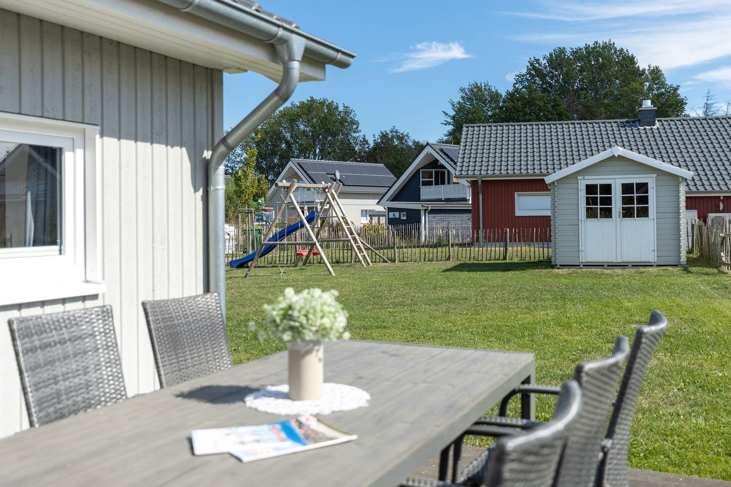 Der komplett eingezäunten Außenbereich bietet Kindern und Haustieren Sicherheit. Auf der möblierten Terrasse können Sie entspannen und den Blick in die Natur genießen. Im Garten finden Sie einen Sandkasten, eine Schaukel und eine Rutsche für die Kinder. Für einen Ausflug zum nahen Ostseestrand steht Ihnen ein Bollerwagen zur Verfügung. Mitgebrachte Fahrräder können direkt auf dem Grundstück untergestellt werden.