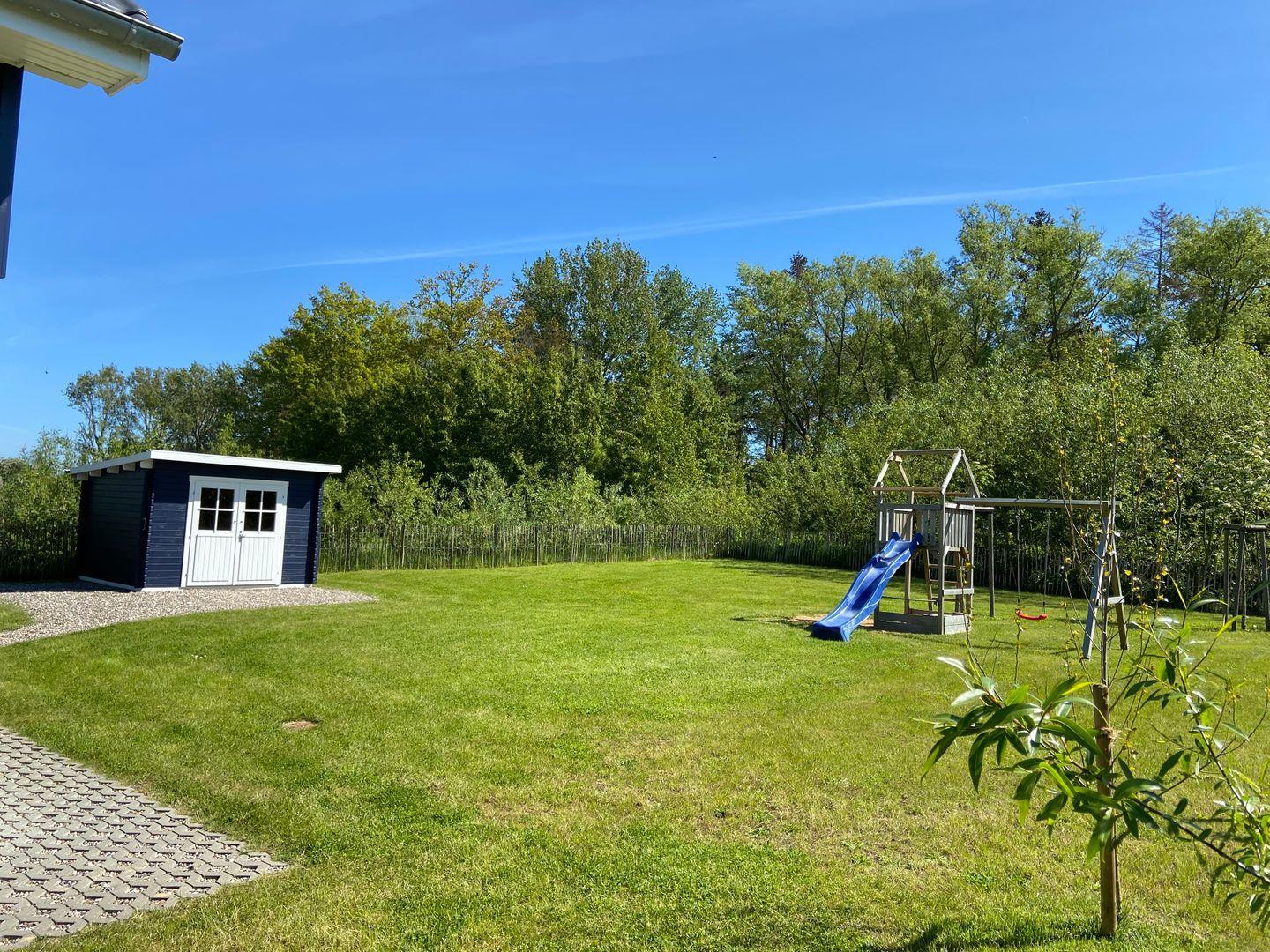 Der weitläufige und eingezäunte Garten lädt Kinder zum sicheren Toben und Spielen ein. Auf der angrenzenden Terrasse können Sie die Ruhe genießen und in die Natur eintauchen. Zwei Schlafzimmer haben Zugang zu einem überdachten Balkon, der Ihnen zusätzliche Entspannungsmöglichkeiten bietet. Der Außenbereich ist umfassend möbliert und hält Gartenspielzeug, Liegen, einen Sonnenschirm und einen Grill für Sie bereit.