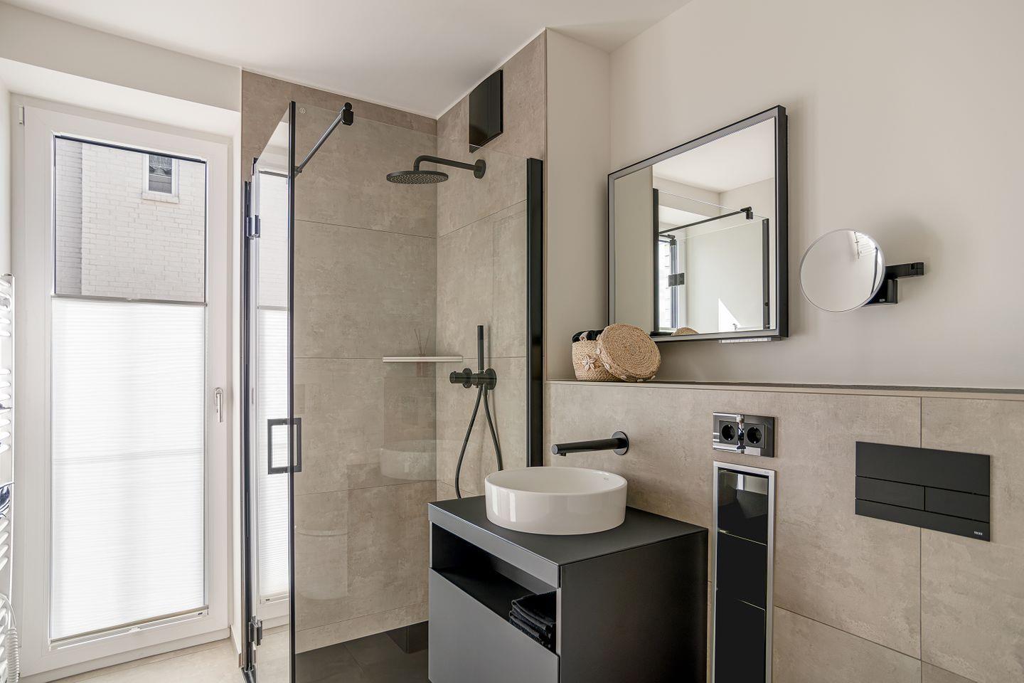 Das Badezimmer ist modern gestaltet und bietet Ihnen alles, was Sie für Ihren Komfort benötigen. Für eine behagliche Atmosphäre sorgt die Heizung, die auch in den kühleren Monaten für angenehme Temperaturen sorgt.