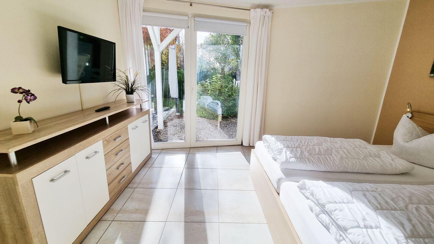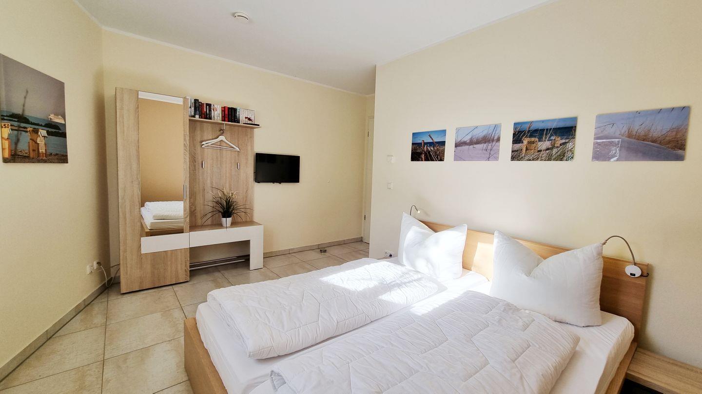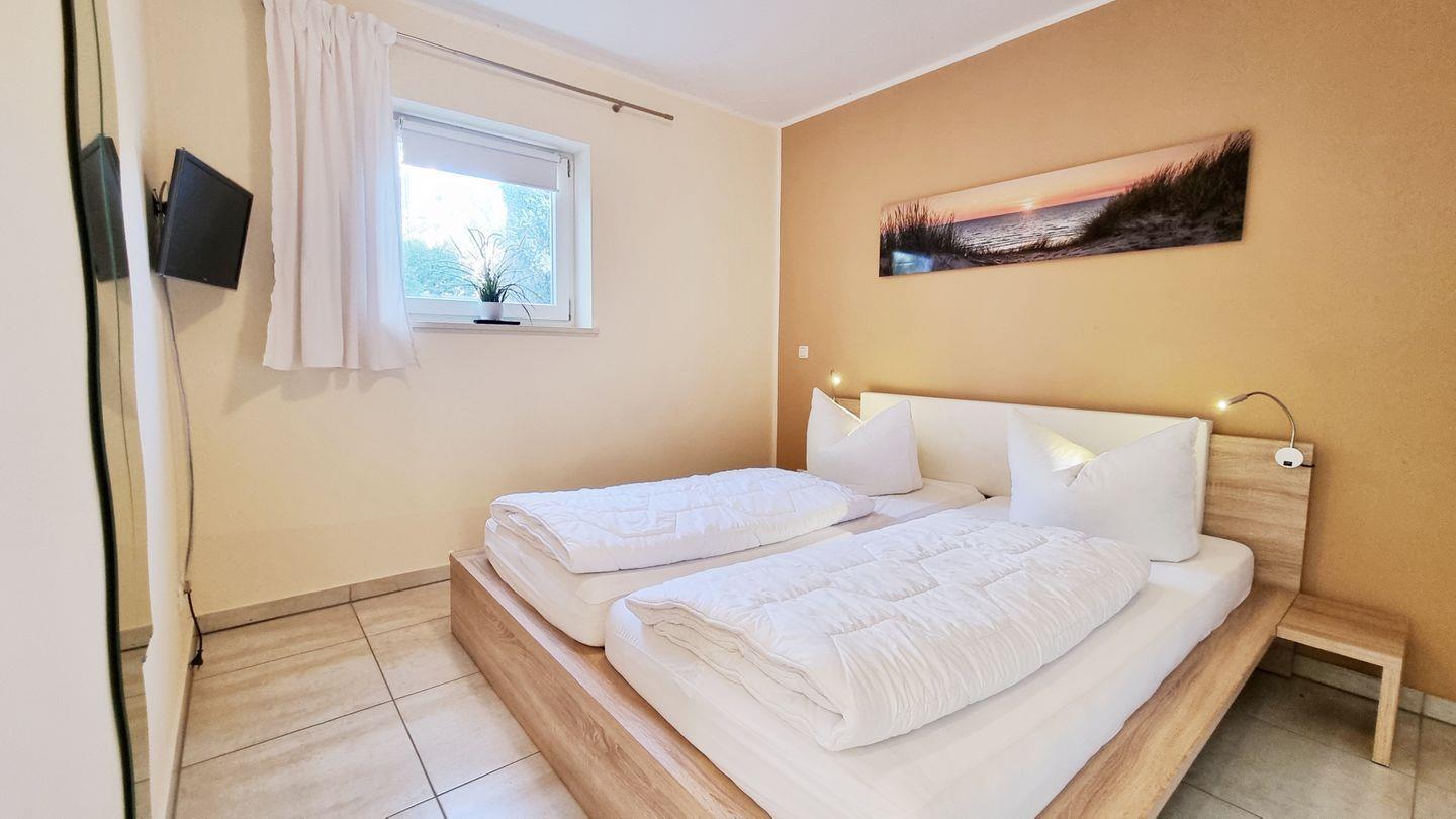 Schlafzimmer II: Doppelbett (180x200cm) / Schrank / Fernseher / Rollo / Gardinen