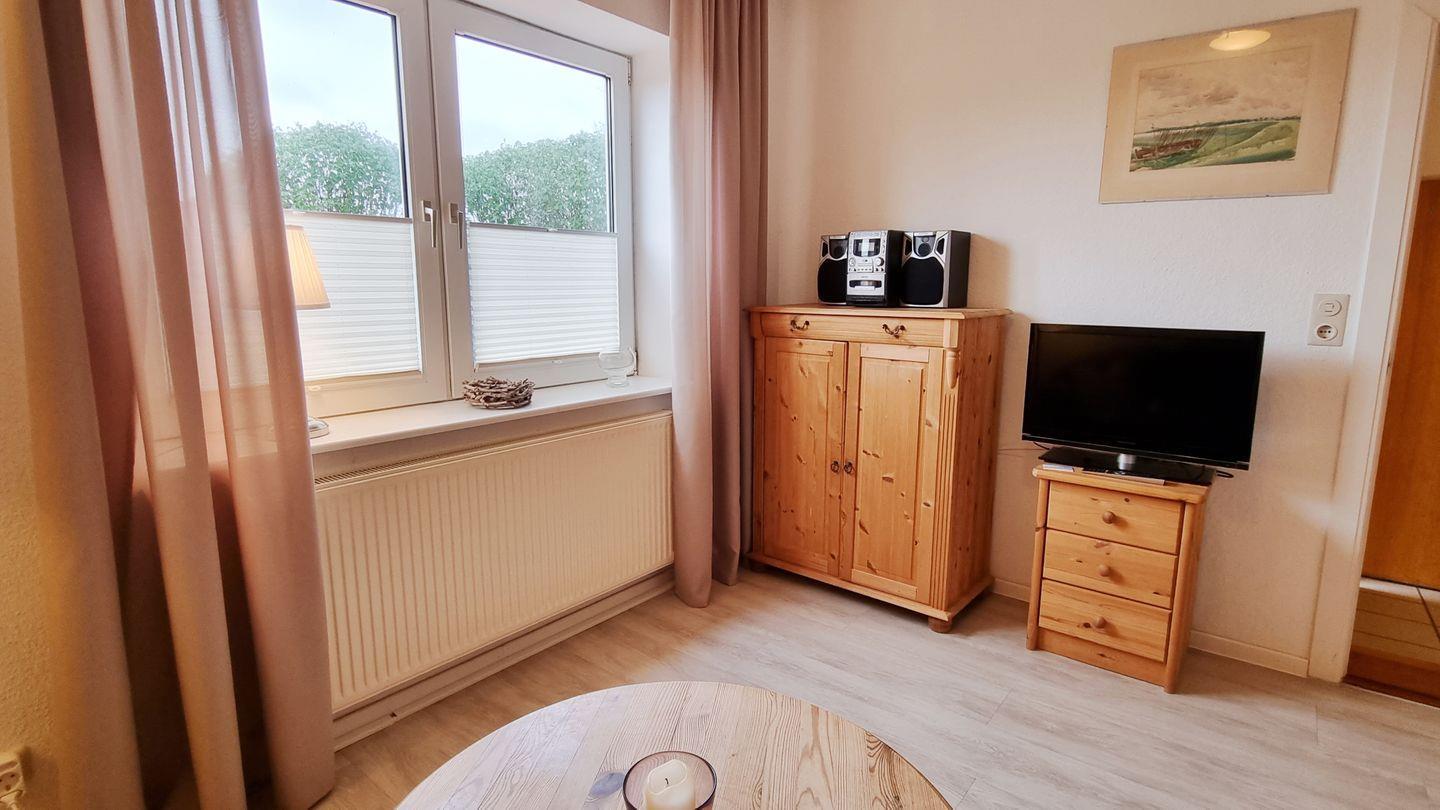 Wohnbereich:2 Zweisitzer-Sofas / Fernseher / Kommode /Plissees