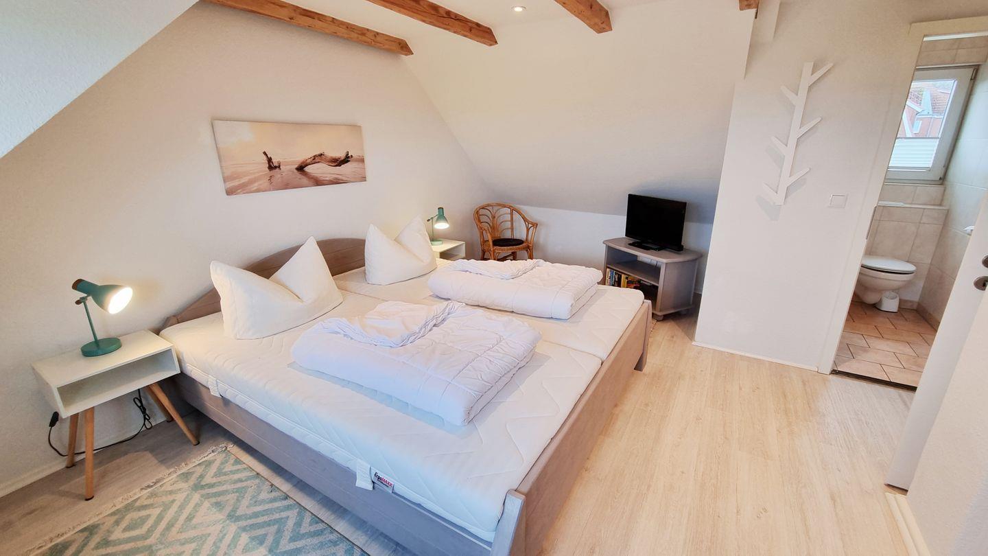 Die top renovierte Ferienwohnung „Achtern Diek 3“ liegt im Obergeschoss des Ferienhauses „Achtern Diek“, nur 50 m von der Ostsee entfernt. Für 3 Personen bietet sie 2 Schlafzimmer mit Meerblick, 2 Duschbäder, moderne Küche und Wohn-/Essbereich. Restaurants, Einkauf und Freizeitangebote sind fußläufig erreichbar.