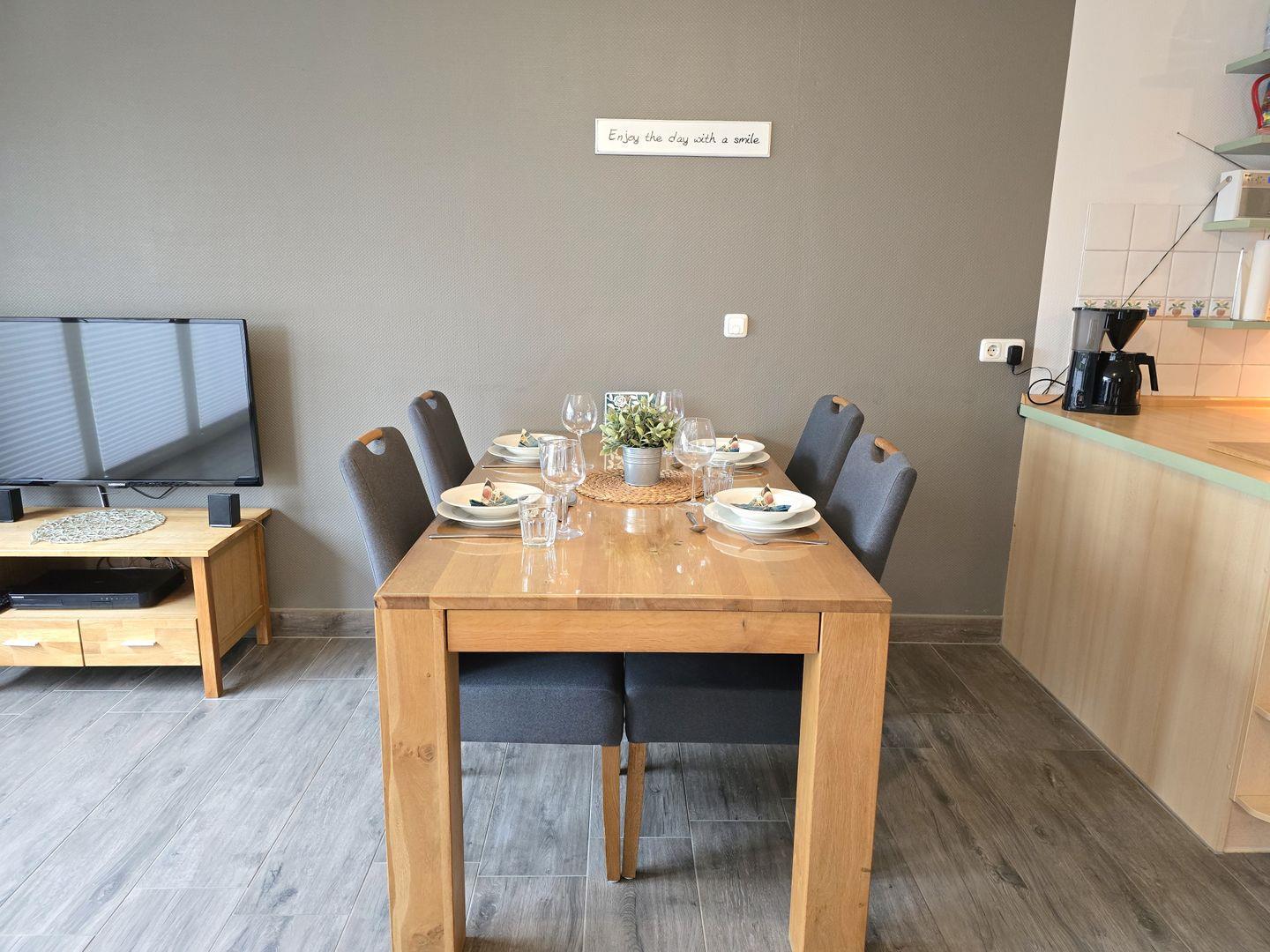 Die großzügige Wohnung bietet Platz für bis zu vier Personen und einen Hund, der dank des eingezäunten Gartens sorglos draußen spielen und die frische Meeresluft genießen könnt. Mit zwei gemütlichen Schlafzimmern, einem modernen Bad und einer offenen Küche, die nahtlos in den gemütlichen Wohn- / Essbereich übergeht, bietet das Appartement den perfekten Raum für gesellige Abende und entspannte Stunden.