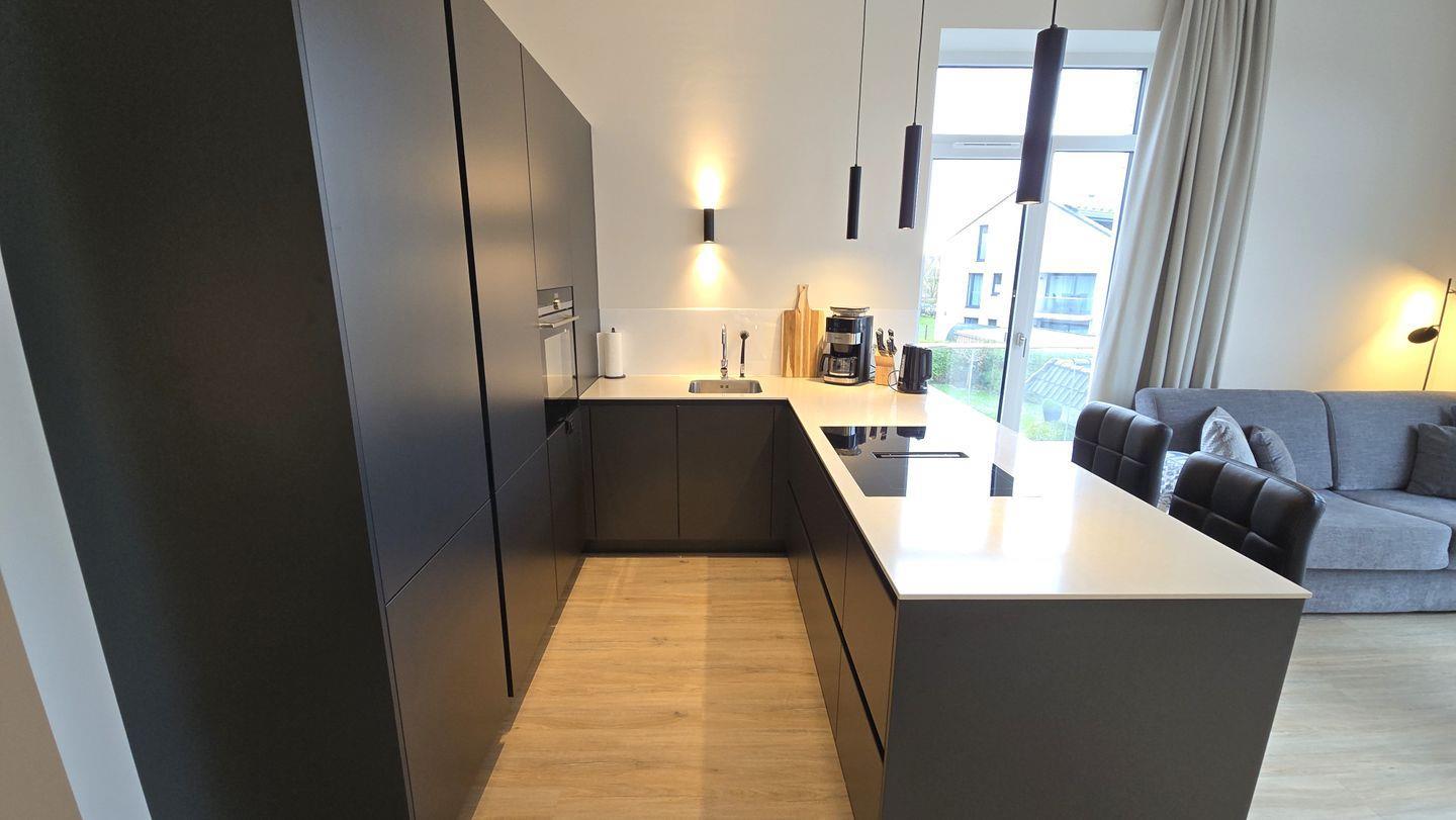 Küche: luxuriöse, offene Küche / Dunstabzug in das Induktionsfeld integriert / Backofen / kleiner (halber)Geschirrspüler / Toaster / Kaffeemaschine (Bohnen und Pulver) / Wasserkocher / Kühlschrank / separierter halber Gefrierschrank mit 3-Fächern / Mikrowelle / Mixer
