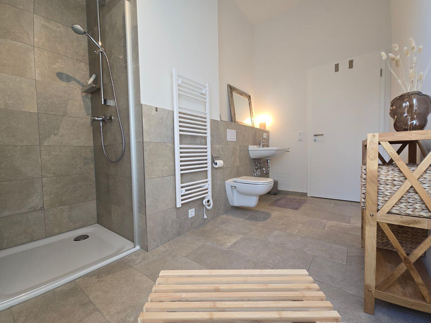 Badezimmer: Dusche / Waschbecken / WC / Handtuchheizkörper