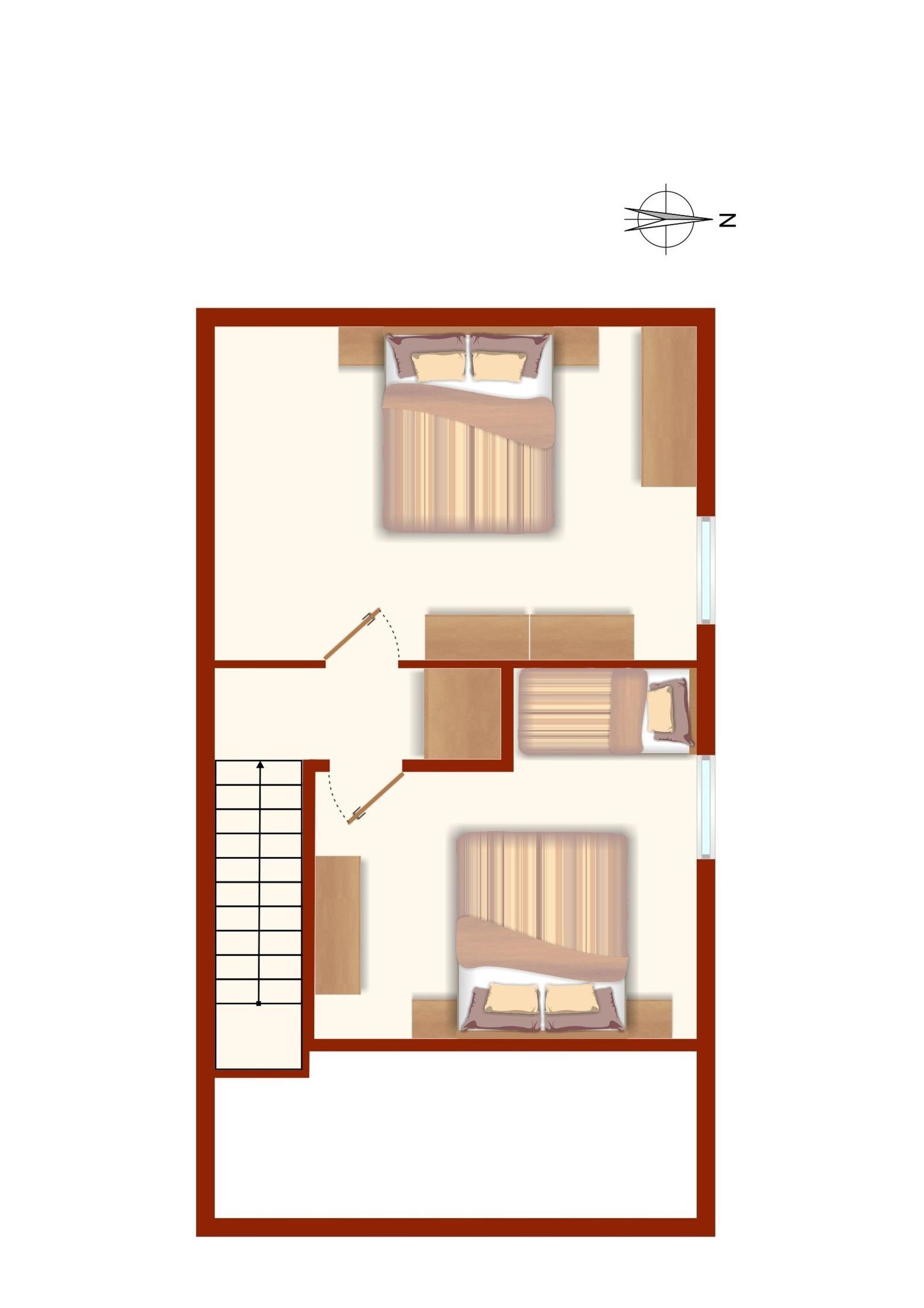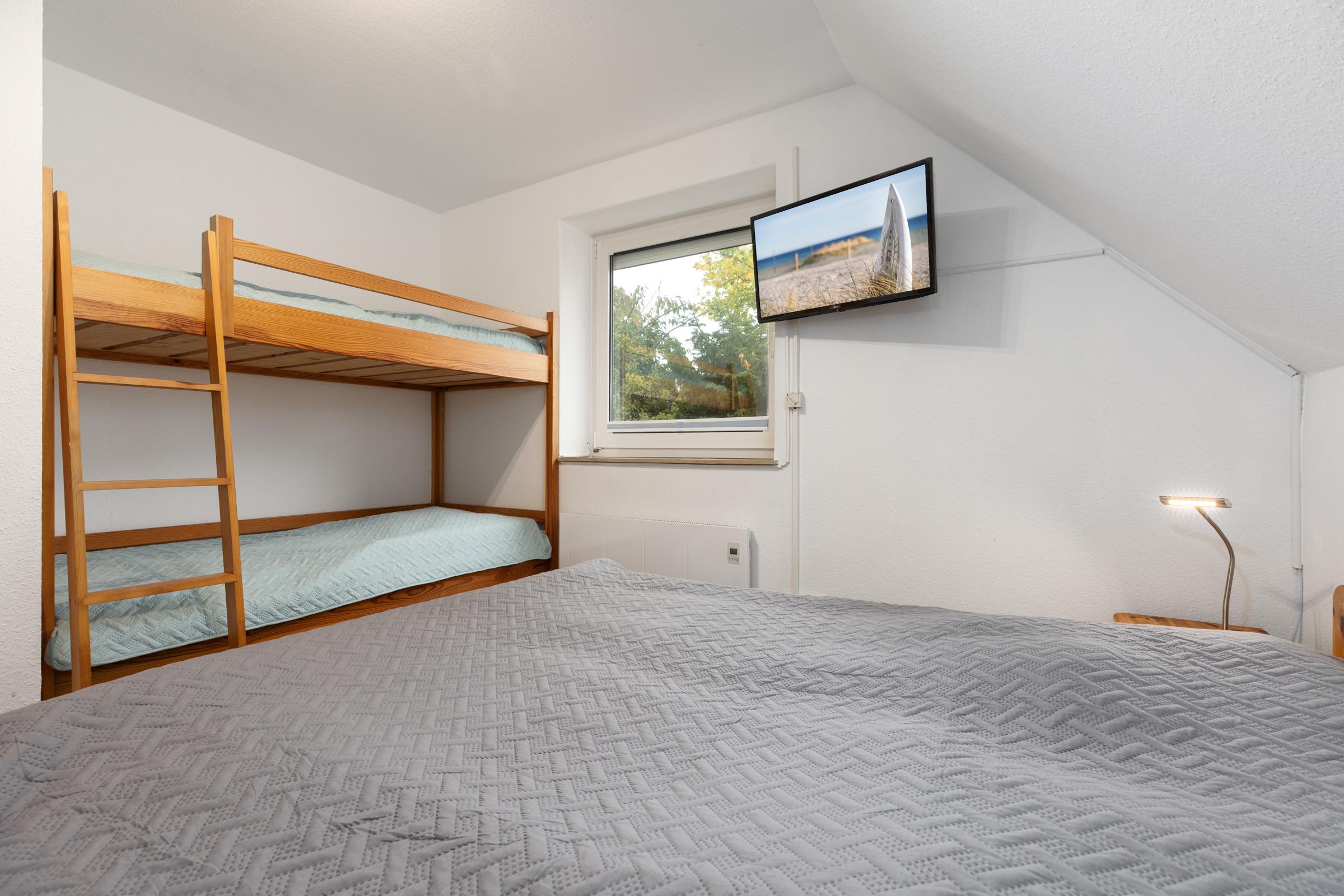 Schlafzimmer 2: Doppelbett, Etagenbett, TV, Verdunkelung (Außenjalousien)