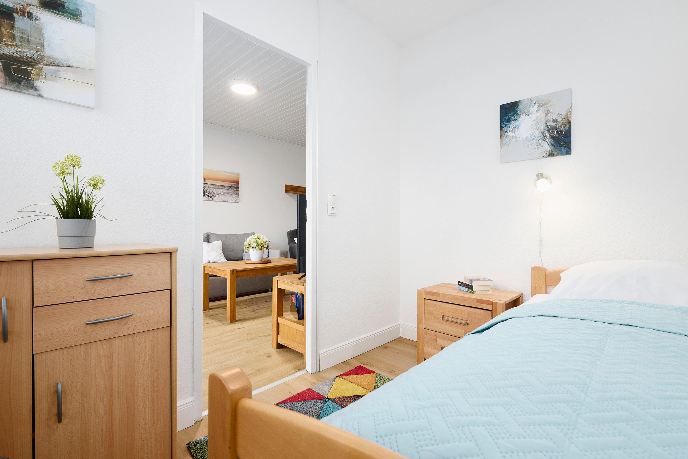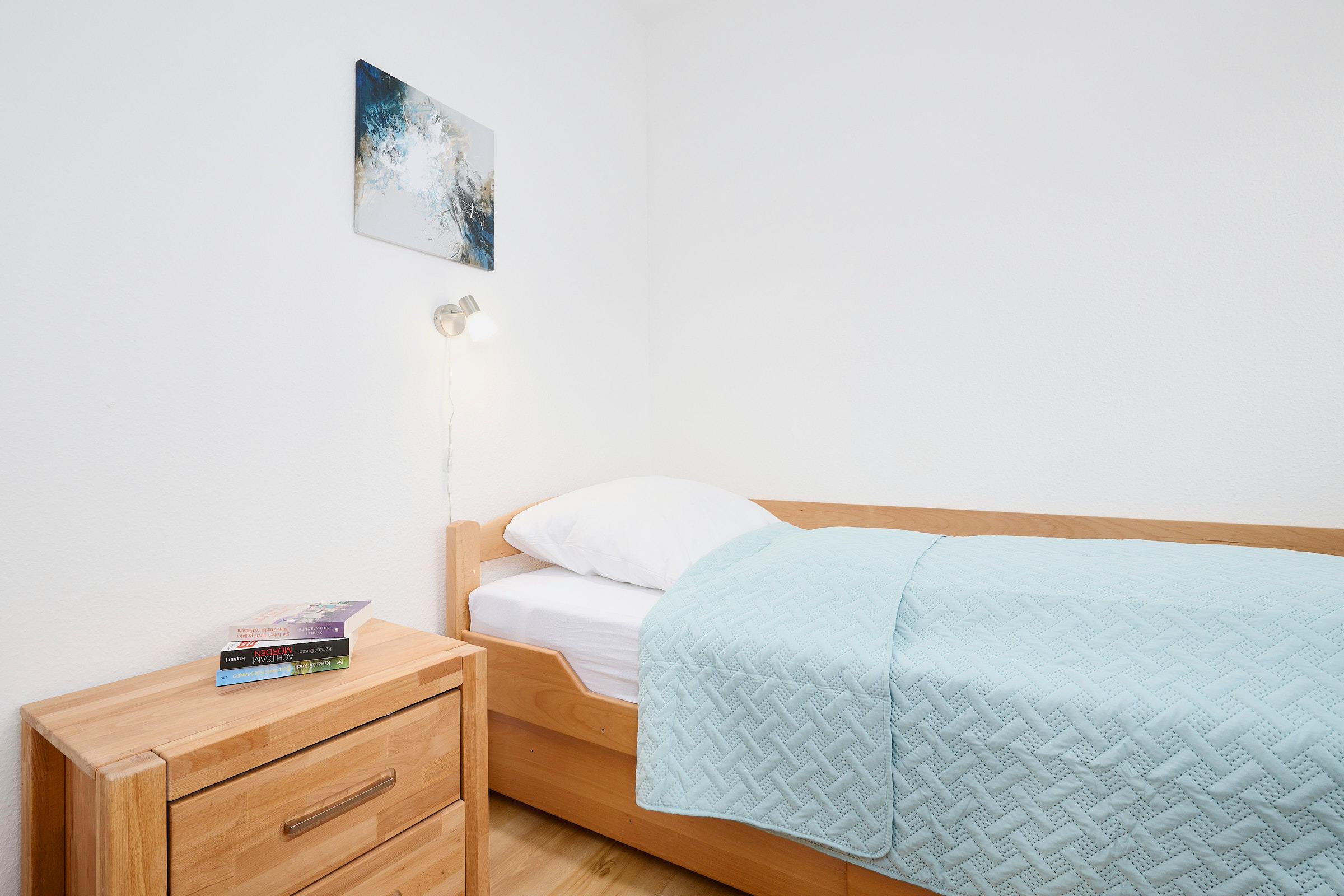 Schlafzimmer 2: Einzelbett (90x200 cm), Kommode, Verdunkelung: elektronische Rollläden
