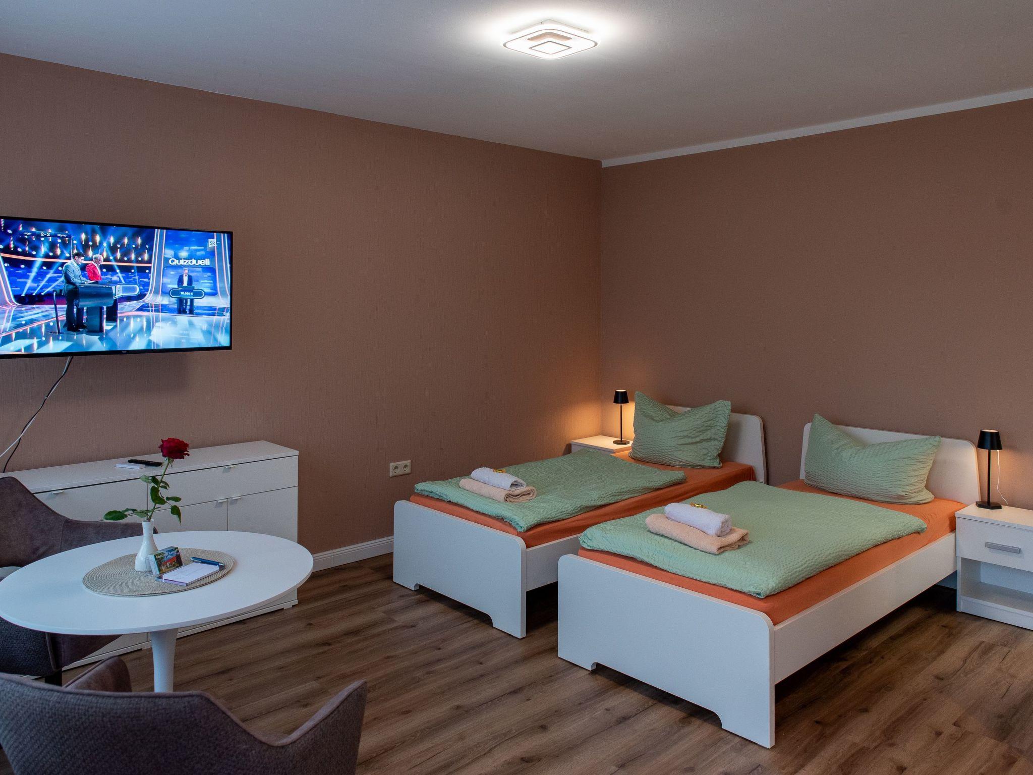 In the district town of Herzberg/Elster with its beautiful historic old town - only 9 kilometres away - there are many supermarkets, shops and restaurants. Highlights include St Mary's Church with its valuable ceiling paintings and restored organ, Grochwitz Park and Castle, the botanical garden and the zoo. Herzberg has a summer swimming pool and a football stadium. In Falkenberg/Elster, 20 kilometres away, you can swim in the Kiebitzsee lake or go pedal boating. In winter, the Wonnemar adventure pool in Bad Liebenwerda is a popular destination.