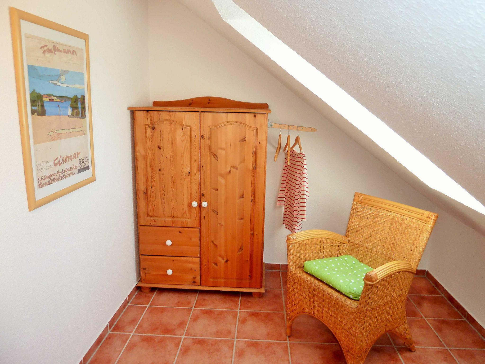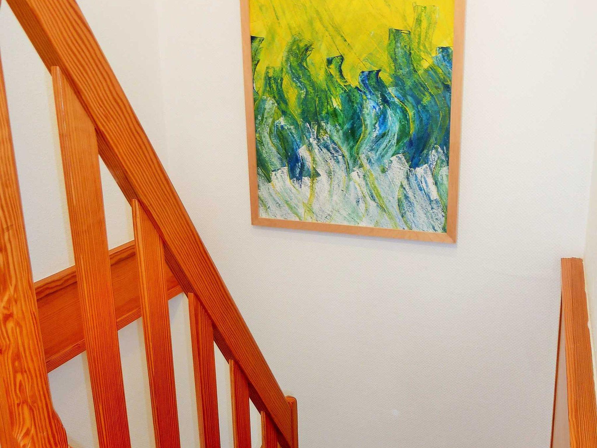 Die liebevoll eingerichtete 2-Zimmer-Maisonette-Ferienwohnung Strandläuferin befindet sich in einer Appartementanlage in der Nähe der Reha-Klinik Schloss Schönhagen. Die 60m² große Wohnung bietet Platz für 2 Personen und hat einen schönen Blick vom möblierten Westbalkon in eine Gartenanlage mit altem Baumbestand. Der individuell eingerichtete Wohnbereich mit einer komfortablen Schlafcouch und der kleinen, offenen Küche sorgen für eine behagliche Atmosphäre. Das helle Bad mit Duschwanne und WC befindet sich auf der Ebene des Wohnbereichs. Ein Studio im Obergeschoss dient als Schlafzimmer mit Doppelbett. Es ist auch als Rückzugsraum über eine Holztreppe erreichbar. In der Wohnung gibt es kostenfreies WLAN. Vor dem Haus steht ein reservierter PKW-Stellplatz zur Verfügung. Im Eingangsbereich gibt es einen kleinen Heizungsraum, in dem maximal 2 Fahrräder untergestellt werden können. Dieser Raum wird gemeinsam mit den Mietern der unteren Wohnung genutzt.