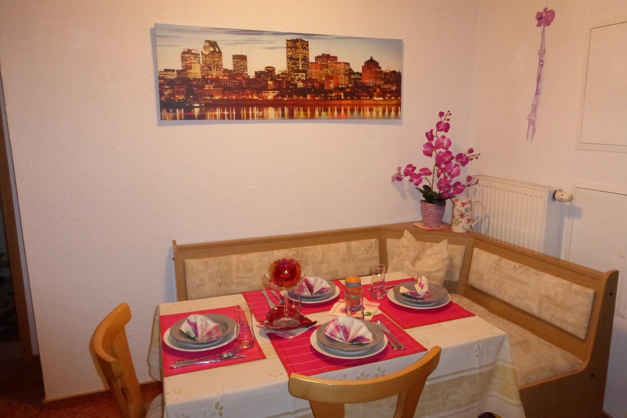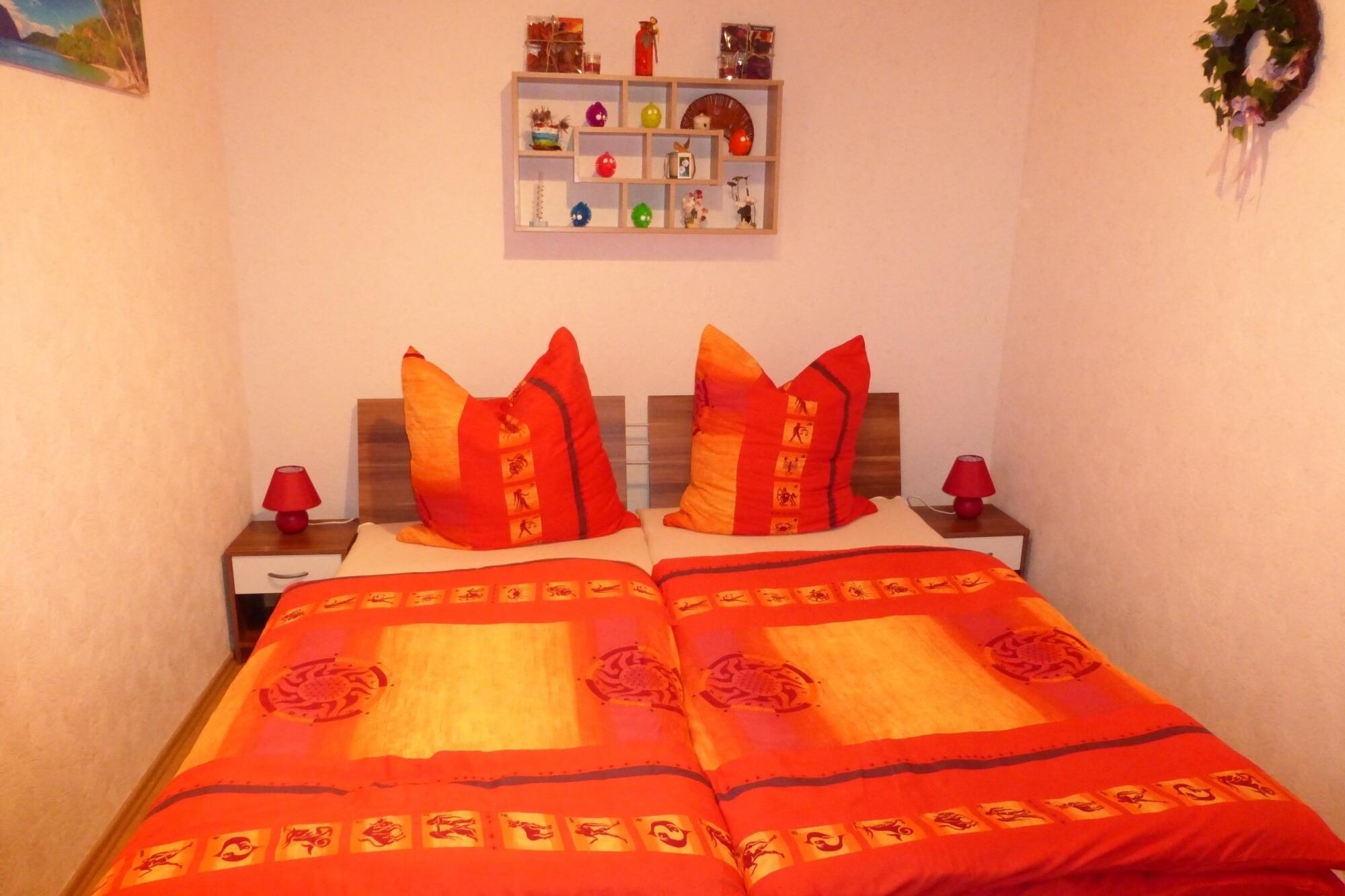 Diese modern eingerichtete Ferienwohnung befindet sich im ersten Stock, eines Anbaus, des abgebildeten Fachwerkhauses. Nur den Hauseingang teilen Sie sich mit dem Vermieter, ansonsten sind Sie im Anbau alleine. Fühlt sich dann fast schon an wie ein Ferienhaus. Die Wohnung ist ausgestattet mit einem Essbereich mit Eckbank und Tisch. Von hier aus erreichen Sie alle anderen Räumlichkeiten: zu diesen gehören eine Küche mit Einbauküche, Mikrowelle und allem was man so braucht. Das große Schlafzimmer mit einem Doppelbett und großem Kleiderschrank. Das kleine Schlafzimmer mit einem Doppelbett und einer Rollgarderobe. Die beiden Betten haben Standardmaß von 180 x 200cm. Das helle Wohnzimmer, mit Flachbildfernseher und Satellitenempfang und DVD-Player. Zum Entspannen findet sich hier eine gemütliche Eckcouch. An die Küche anschließend kommen Sie in das große Bad. Hier haben Sie eine Sauna, eine Dusche und eine Waschmaschine. Wenn gewünscht wird ein Baby/Kinderbett und ein Hochstuhl zur Verfügung gestellt.