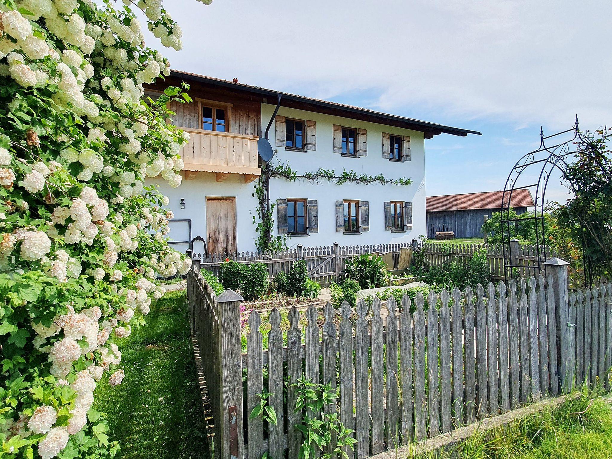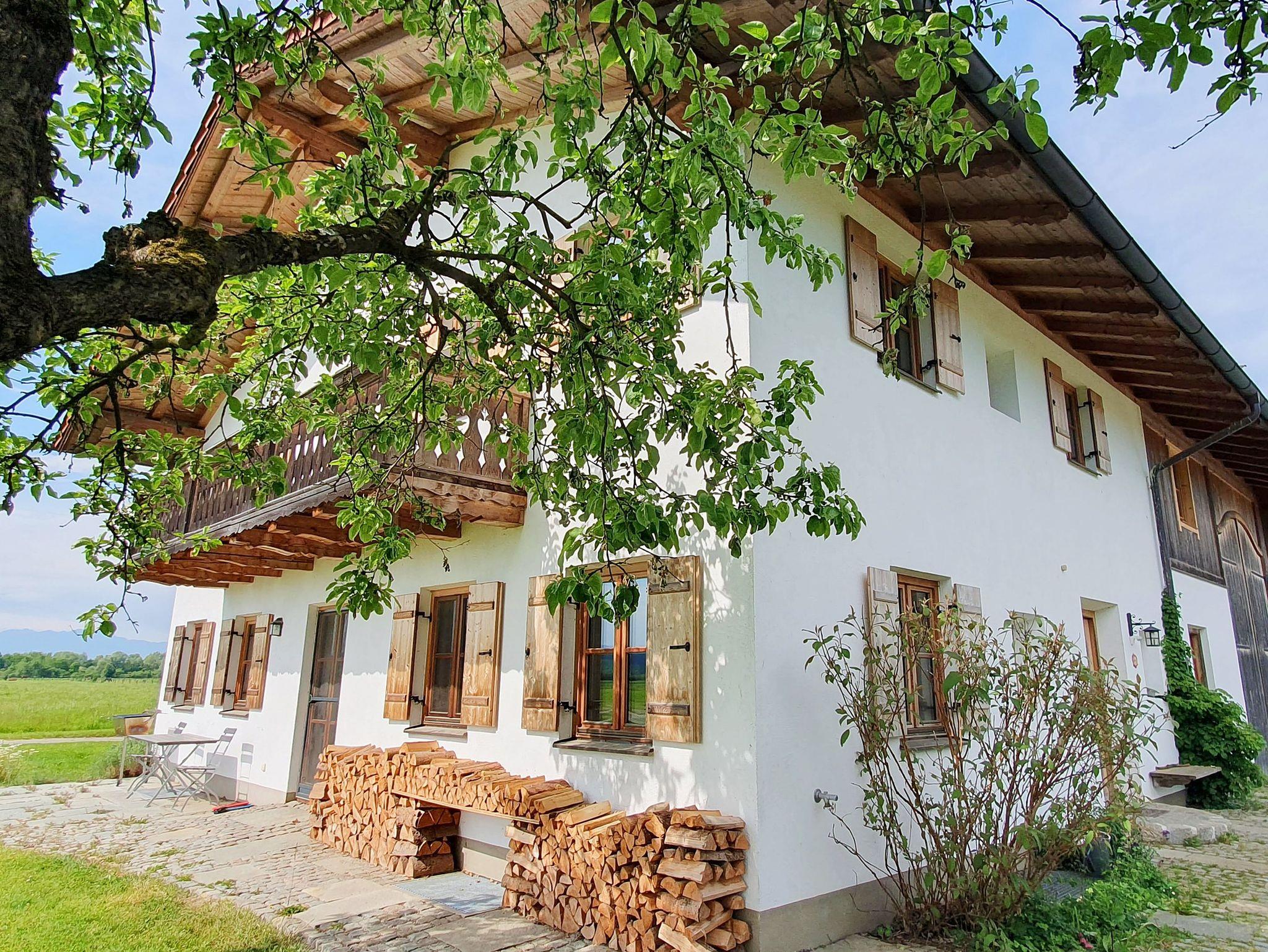 Sehr gemütliche und komfortable Neubauwohnung auf dem Bauernhof mit Bergblick, absoluter Ruhe und ländlicher Idylle. Im Obergeschoss mit zweiter Ebene unter dem Dach (Kl.Galerie). Vom großzügigen Balkon aus Blick auf die bayerischen Alpen. Kindgerecht und seniorenfreundlich ausgestattet mit qualitativ hochwertigem Mobiliar zum Wohlfühlen und Entspannen.