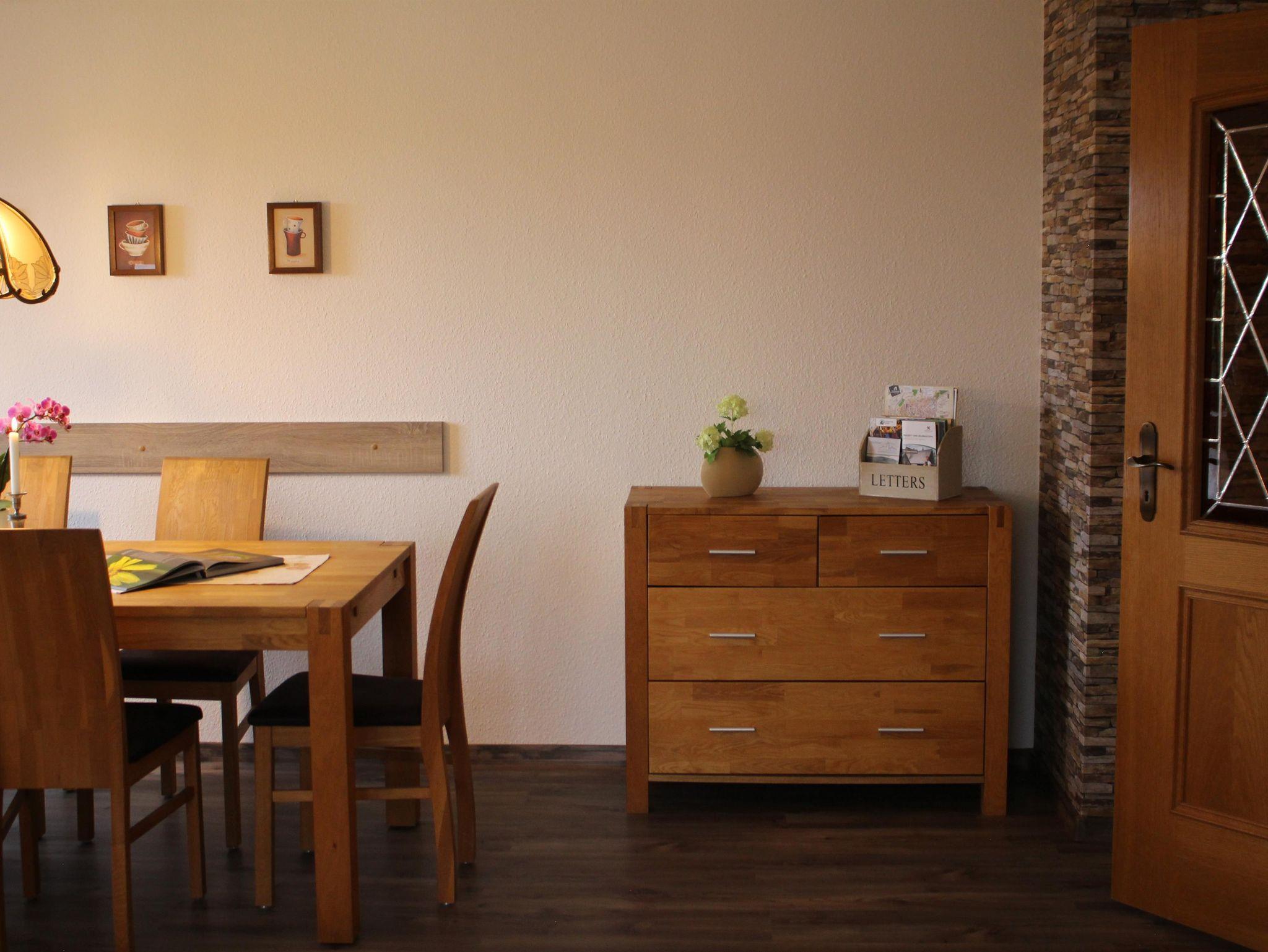 Die ca. 100 m² große, liebevoll eingerichtete Ferienwohnung Christine bietet ausreichend Platz für bis zu 4 Erwachsenen und 2 Kindern und ist wie folgt ausgestattet: Küche: Eßplatz für 4 Personen, Kaffeemaschine, Wasserkocher, Toaster, Mikrowelle, Backofen, Ceranfeld, Geschirrspülmaschine, Kühlschrank, Abstellraum / Wohn-/Eßzimmer: Gemütliche Sitzgruppe mit Sofa, Sessel & Hocker, Großer Eßtisch mit 6 Stühlen, Wohnmöbel, TV, WLAN / Schlafzimmer I: Doppelbett (180x200 cm) mit getrennten Matratzen, Bettwäsche, Extra-Kissen, Wohn-/Schlafdecken / Schlafzimmer II: Doppelbett (180x190 cm) mit getrennten Matratzen, Bettwäsche, Extra-Kissen, Wohn-/Schlafdecken; Pro Schlafzimmer ist jeweils eine Aufbettung im Gästebett (90x190 cm) möglich. / Bad: Dusche, Badewanne, WC, Badmöbel, Föhn, Handtücher / Seperates WC / Flur: Schuhablage, Regal und Spiegel / Auch kombinierbar mit Ferienwohnung Wally auf der gleichen Etage - ideal für Gruppen.