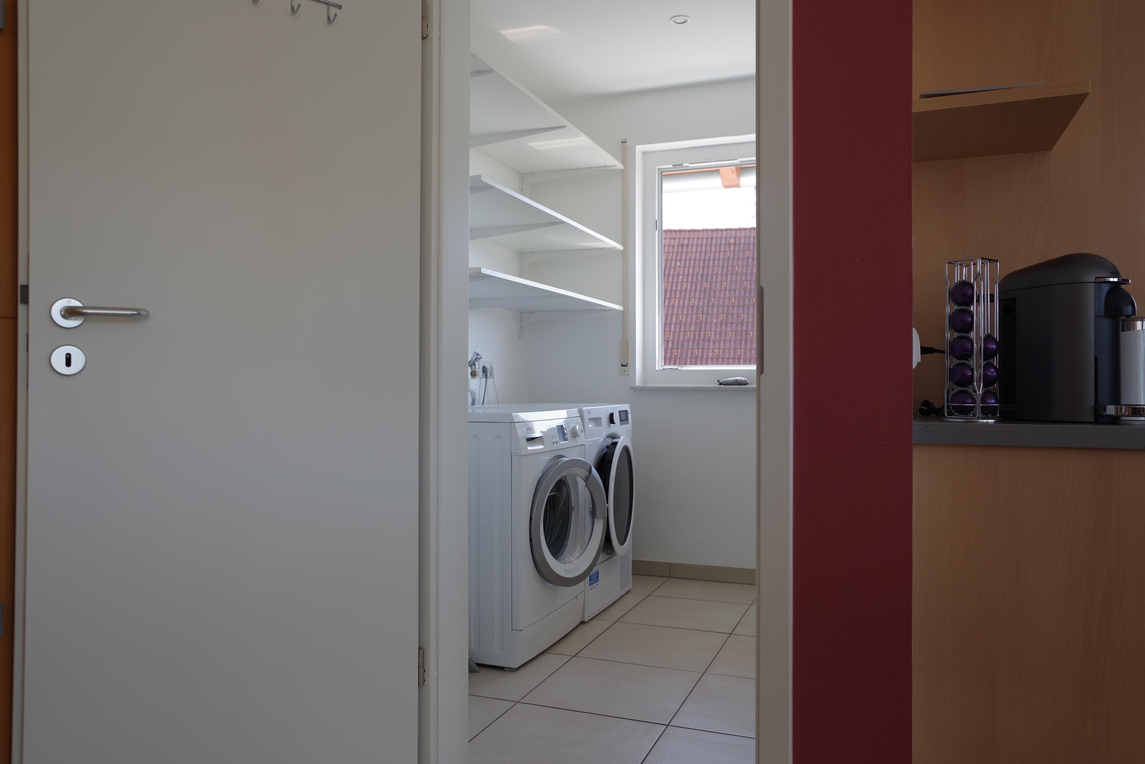 • Waschmaschine und Wäschetrockner im Waschraum innerhalb der Wohnung