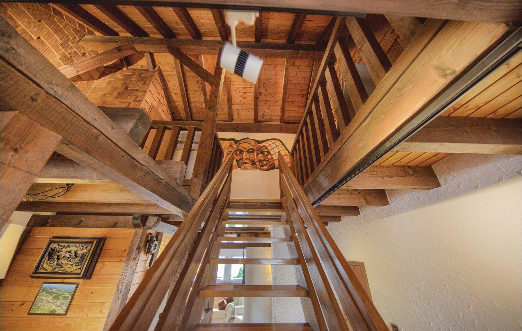 Ein separater Lesebereich lädt am urigen Kachelofen zur Ruhe ein. Auf der Galerie, die über eine Treppe erreichbar ist, können ein Massagesessel, Spielsachen für Kinder und Darts genutzt werden.