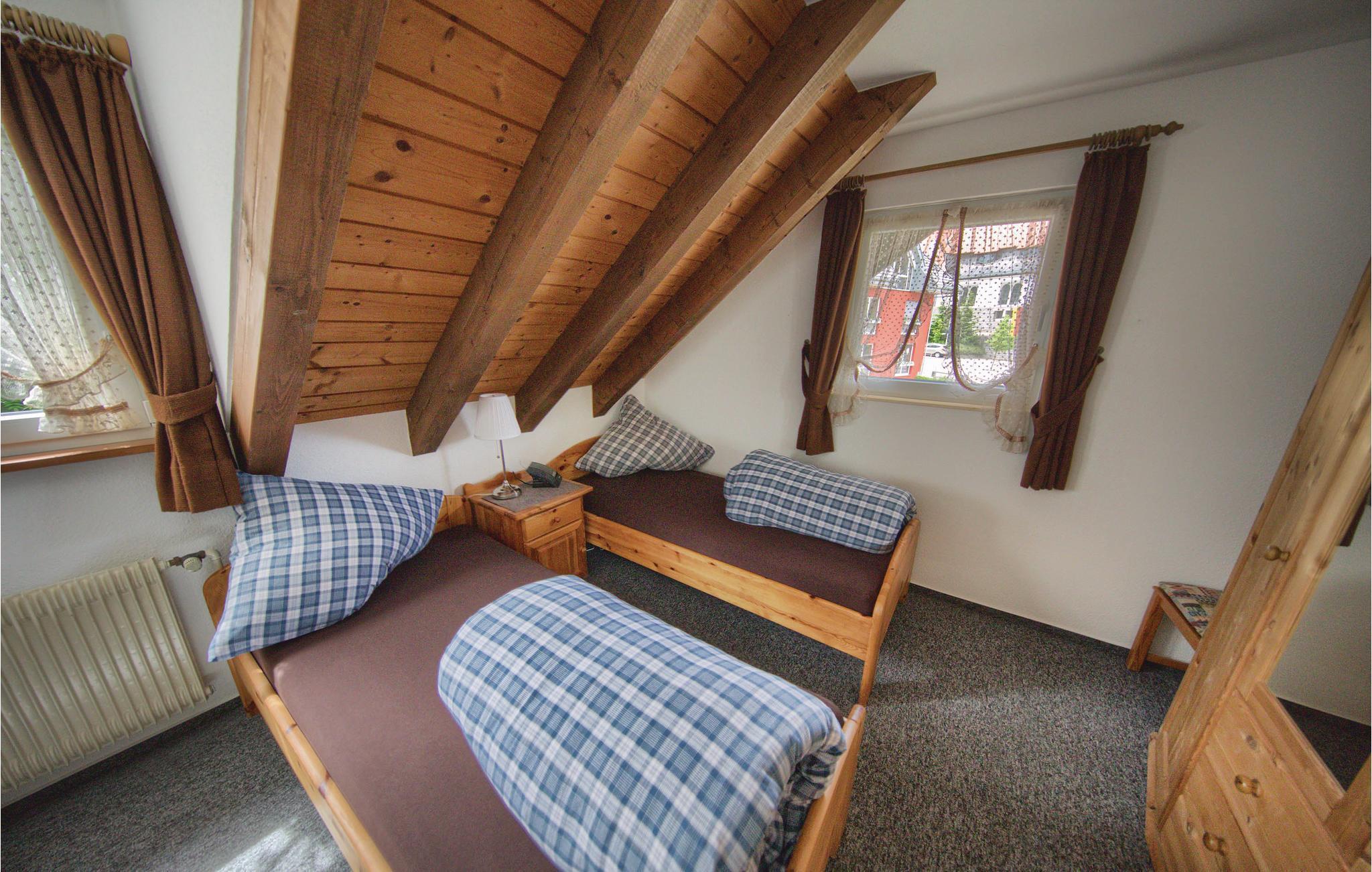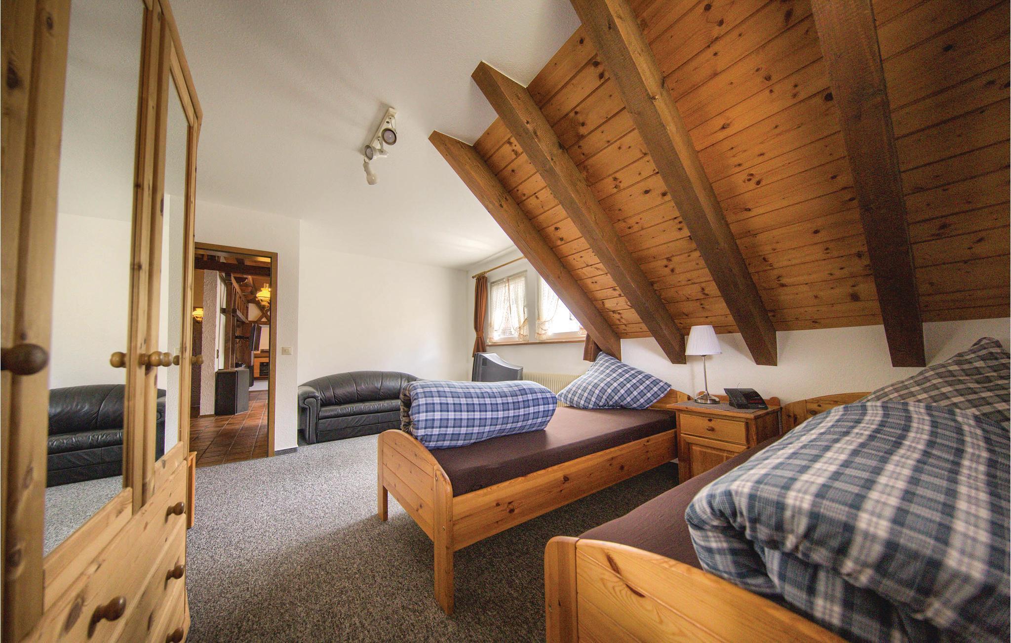 Die beiden großen, komplett möblierten Balkone erlauben einen herrlichen Blick über Schonach und auf die Ortsmitte.Auf 105 m² ist genügend Platz, um einen entspannten Urlaub zu zweit oder mit der ganzen Familie zu verbringen. Die im Fachwerkstil ausgebaute Wohnung verfügt über ein Schlafzimmer mit Doppelbett und einem Schlafzimmer mit zwei Einzelbetten, Schlafsofa und Fernseher. Zusätzlich stehen Kinderbett und Hochstuhl bereit.