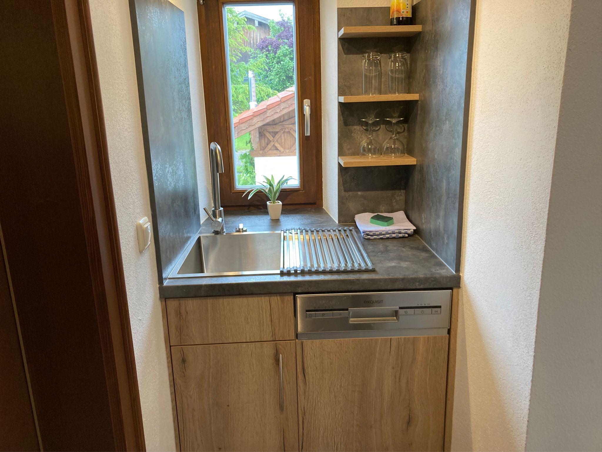 Kleine schnuckelige Wohnung für zwei Personen.Kochnische und Badezimmer 2022 neu erbaut.Balkon mit seitlichem Blick auf den Chiemsee.