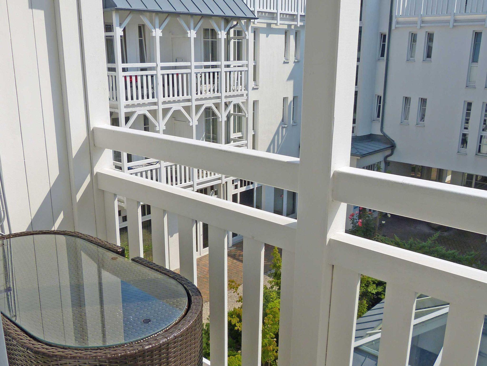 Die Ferienwohnung Kajüte 1 liegt im Ostseebad Sellin auf Rügen. Sie befindet in dem Seepark Sellin, mit seiner wunderschönen klassischen weißen Bäderarchitektur, in der zweiten Etage im Haus Having. Die Nichtraucherwohnung verfügt bei 22 m² über einen kleinen Wohn- und Schlafraum mit einen Doppelbett mit zwei Matratzen unterschiedlicher Härtegrade sowie einer Küchenzeile. WLAN steht Ihnen kostenlos zur Verfügung. Der Balkon verführt zu einem gemütlichen Frühstück an der frischen Luft oder lädt ein, den Tag bei einem gutem Buch und einem Glas Wein in der Hand entspannt ausklingen zu lassen. Haustiere sind nicht gestattet. Der Seepark liegt im Zentrum von Sellin, nur ca. 17 Gehminuten vom Südstrand entfernt. Das Ostseebad Sellin erhebt Kurtaxe. Diese wird über den Eigentümer der Wohnung abgerechnet. Die Kurkarten zur Nutzung der vielen Vergünstigungen erhalten die Gäste vom Vermieter ( Eigentümer der Wohnung ) Gleich um die Ecke unserer Ferienwohnung ist ein Supermarkt. Dort findenden Sie alles, was Sie für die tägliche Selbstversorgung brauchen. Der Bäcker für Ihre leckeren Frühstücksbrötchen ist ebenfalls dort zu finden. Im Seepark gibt es weiterhin einen Waschsalon, diverse gemütliche Cafés und Restaurants, eine Eisdiele, Pizzeria und einen Fahrradverleih. Das in der Nähe befindliche Spaßbad AHOI Rügen Bade- & Erlebniswelt mit Sauna ist besonders in der Zeit des Jahres verführerisch, in der die Ostsee nicht zum Baden verleitet. Ein Minigolfplatz und eine Abfahrtsstelle der Bäderbahn sind auch direkt am Seepark zu finden.