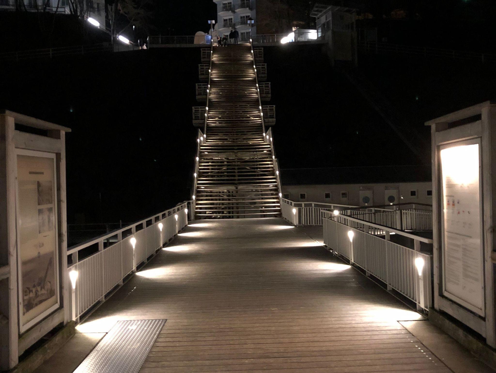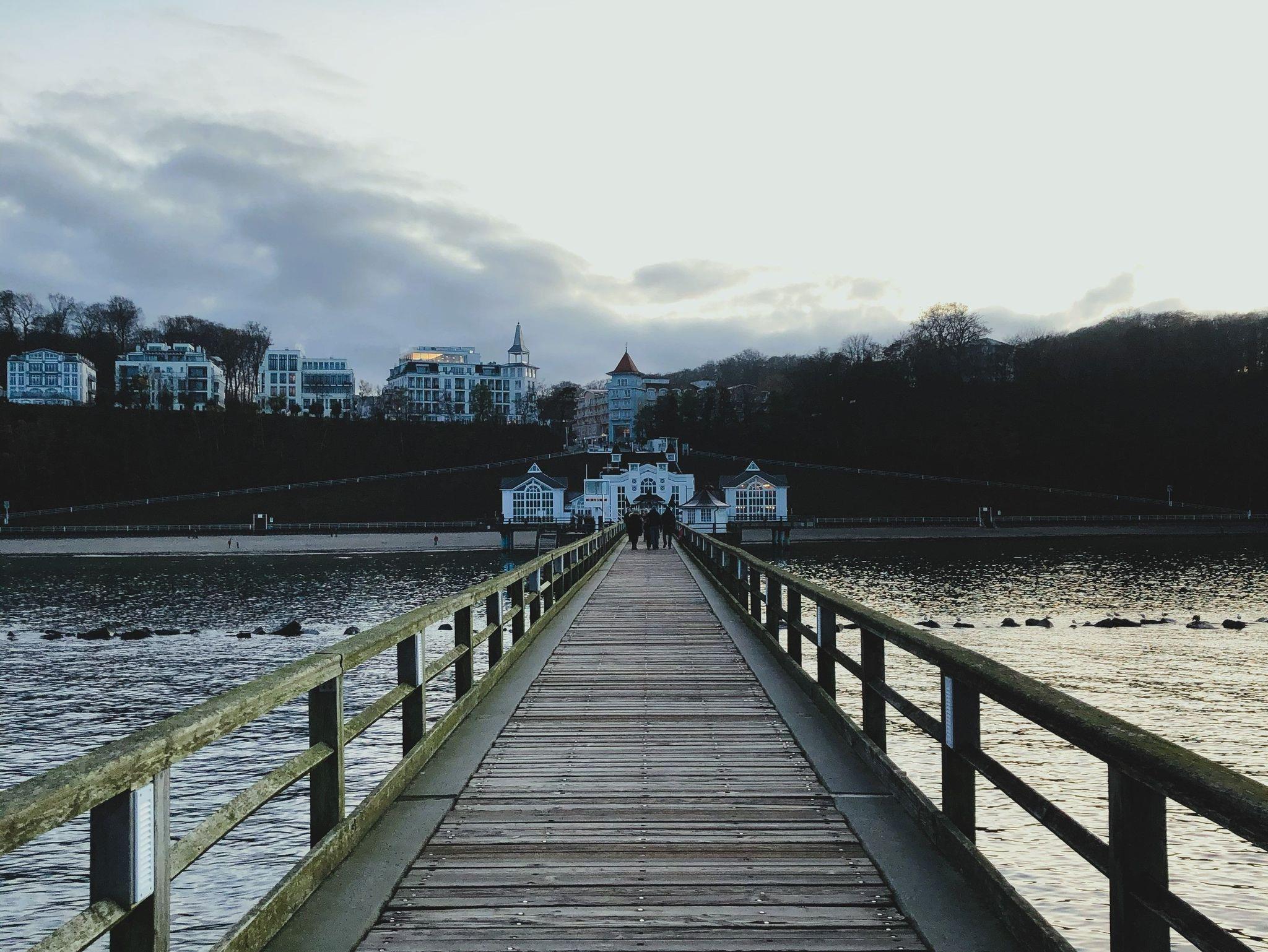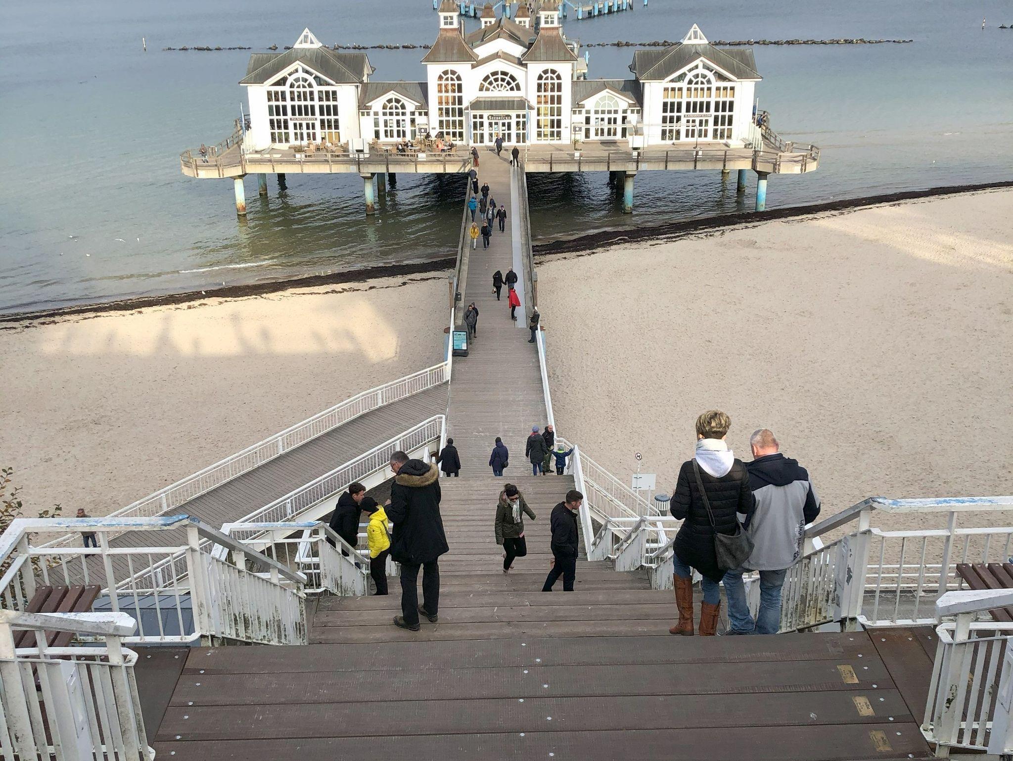 Direkt unterhalb der Ferienwohnung verläuft die Seeparkpromenade, die in nordwestlicher Richtung Meer in die Wilhelmstraße, dem Ortszentrum von Sellin, mündet. Endpunkt der Wilhelmstraße bilden das Hochufer und die bekannte Seebrücke.