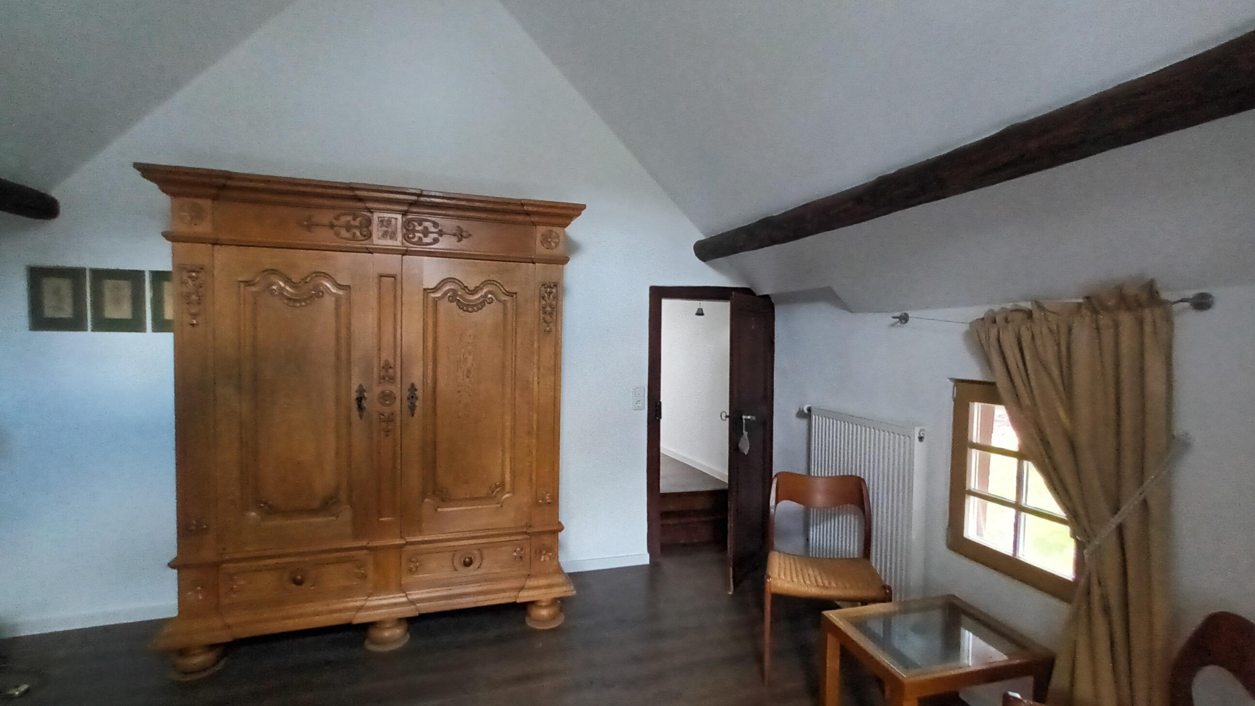 Ein eigener Stellplatz sowie ein separater Außenbereich mit Sitzgelegenheit laden zum Entspannen ein. Die Wohnung hat einen eigenen Eingang und ist somit unabhängig und privat. Viele Elemente sind im Original erhalten, verleihen dem Haus seinen historischen Charme und Charakter.