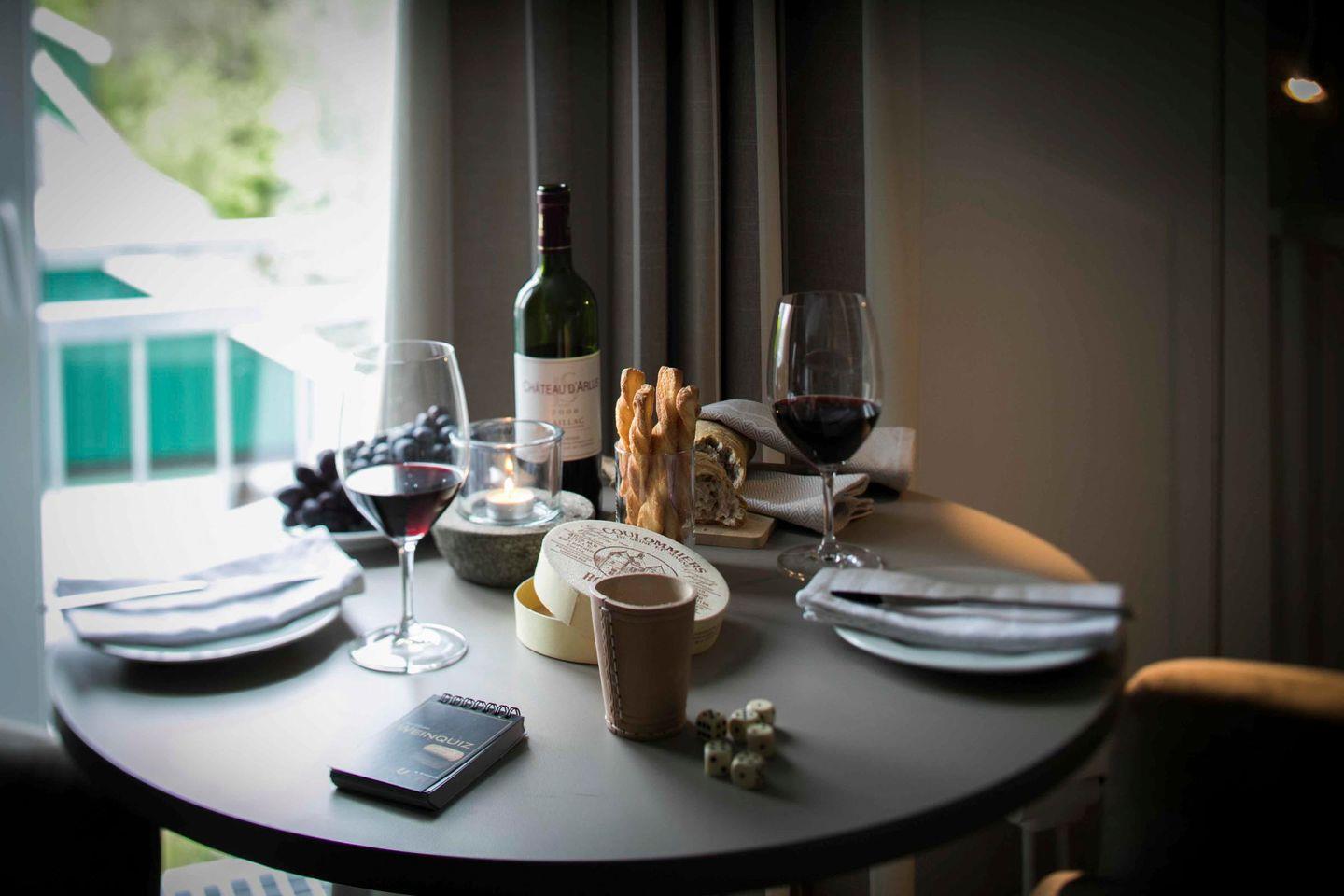 Es ist mit einem komfortablen Boxspring-Doppelbett, einem neuen Flachbild-TV mit Kabelfernsehen, einem Radio/CD-Player, eigenem WLAN und einem kleinen Kühlschrank ausgestattet. Außerdem haben Sie die Möglichkeit, sich Tee oder Kaffee zuzubereiten. Die geschmackvolle und elegante Einrichtung schafft eine angenehme Urlaubsatmosphäre.