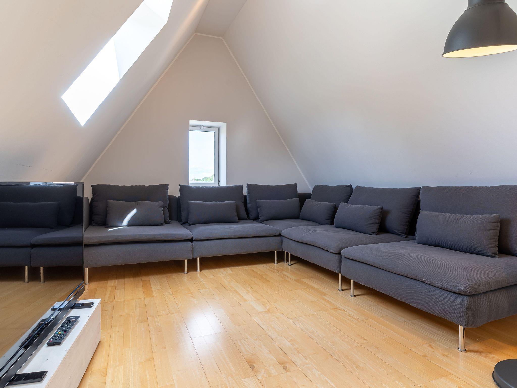 Unter dem Dach erwartet Sie der Wohnzimmerbereich. Ob Sie nun lesen, oder Homeoffice machen möchten oder auch nur Netflix oder Free TV gucken möchten, alles ist hier möglich.