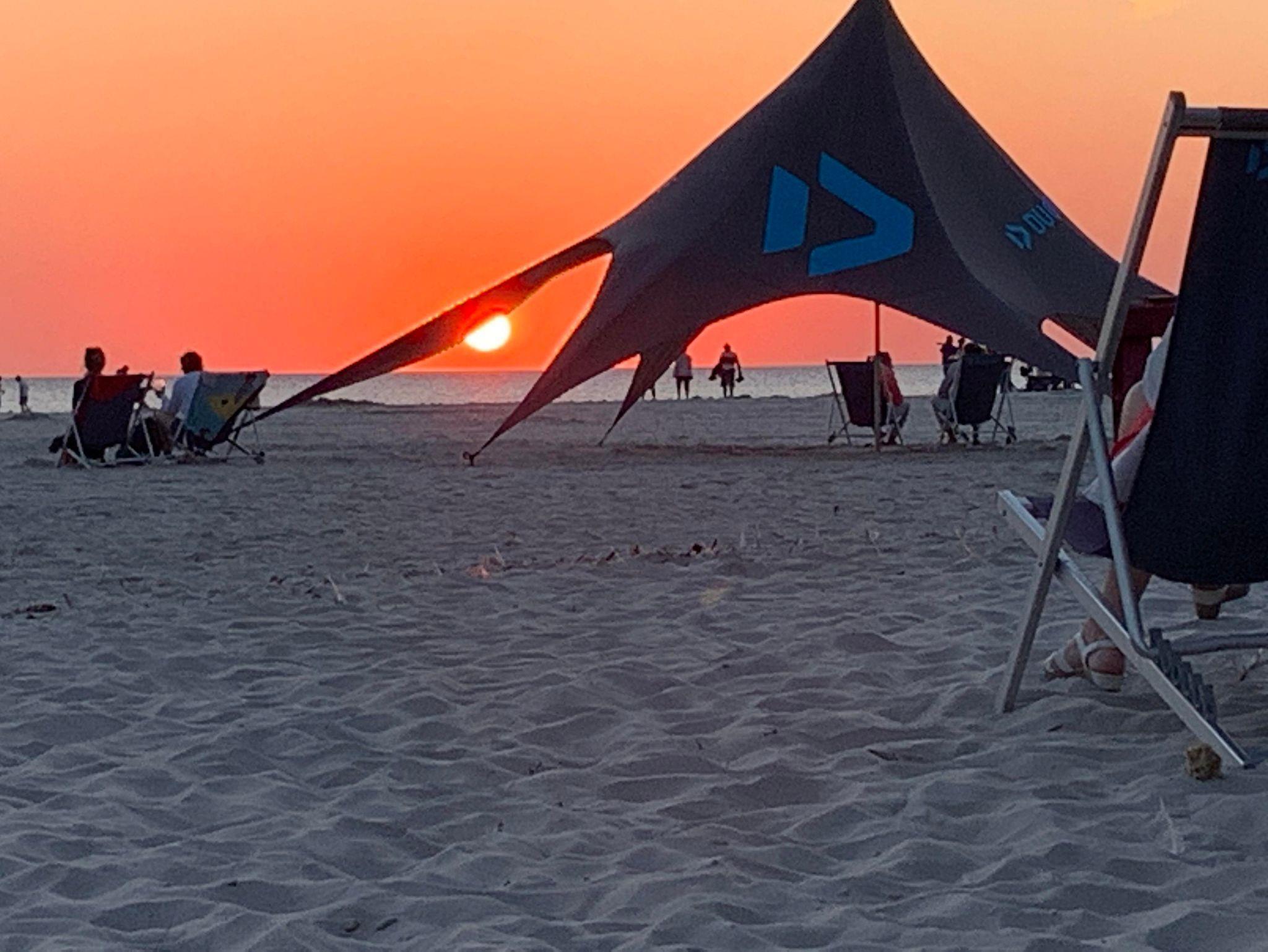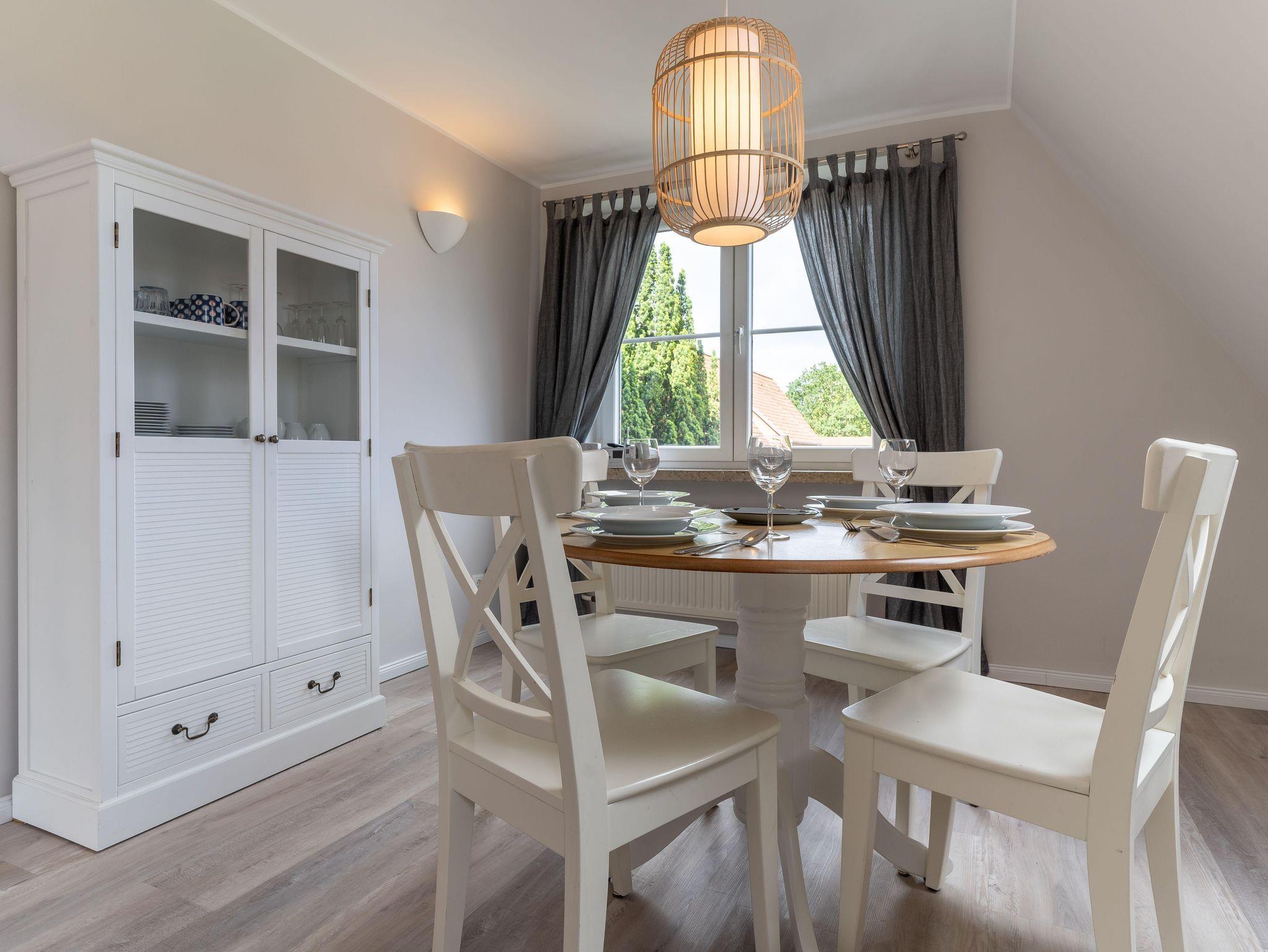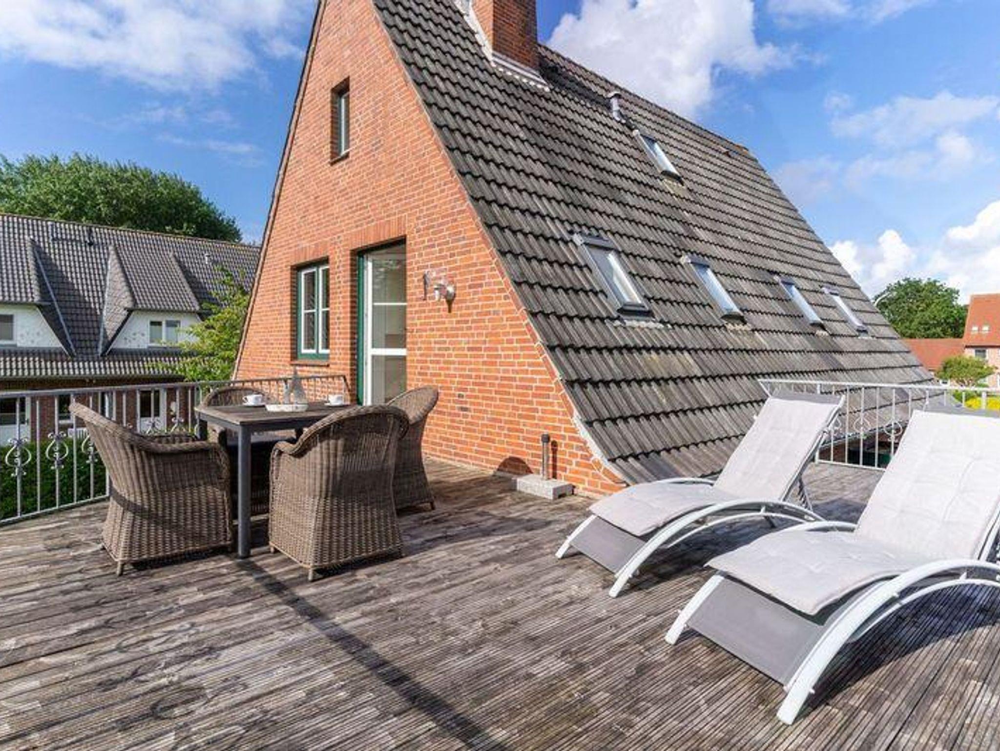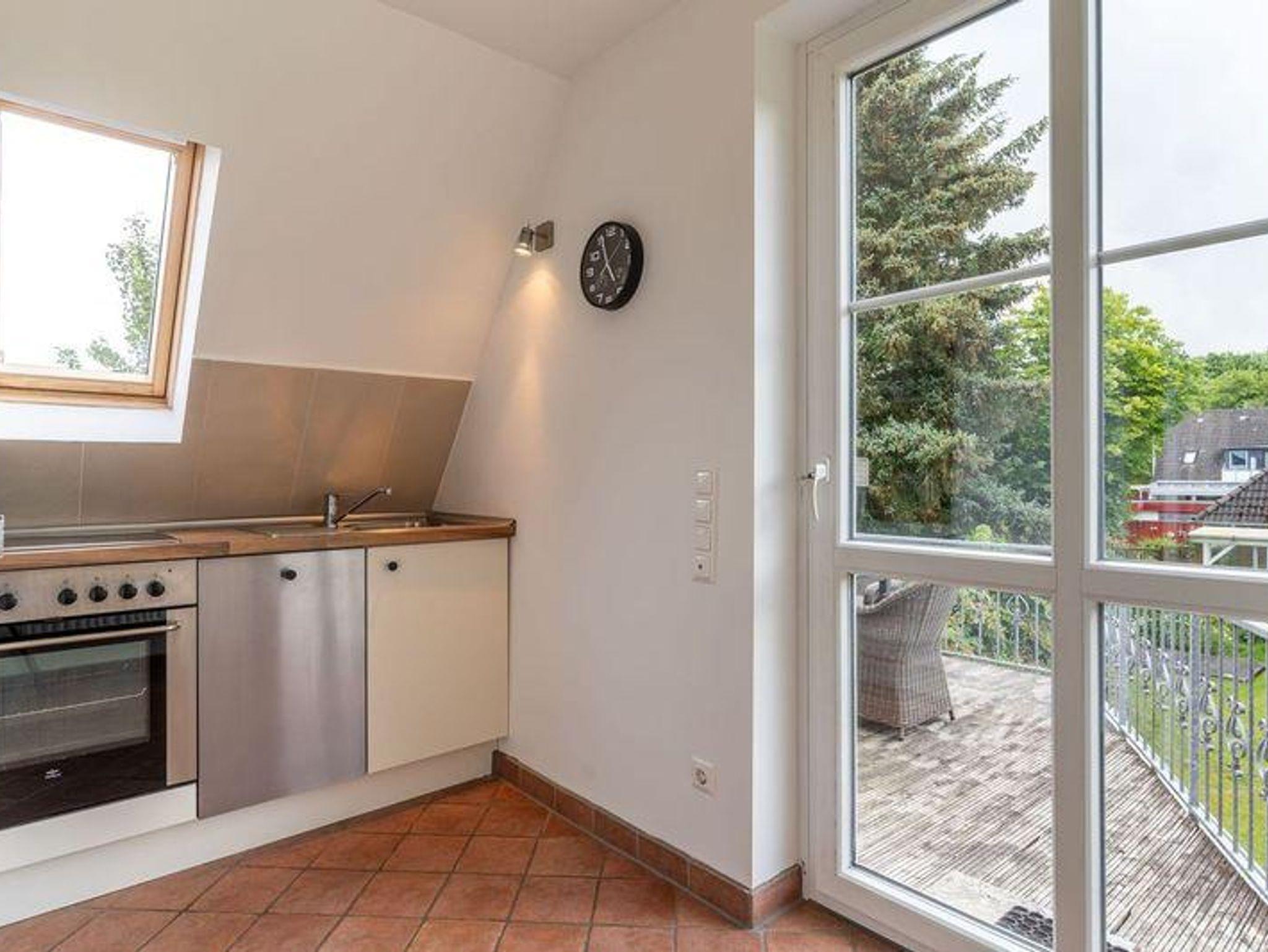 Über die volleingerichtete Küche erreichen Sie die große Dachterrasse, wo Sie sich sonnen können oder auch frühstücken. Falls der Wind mal zu stark bläst, kann man gemütlich im Esszimmer bei Musik seinen Kaffee oder Tee geniessen.