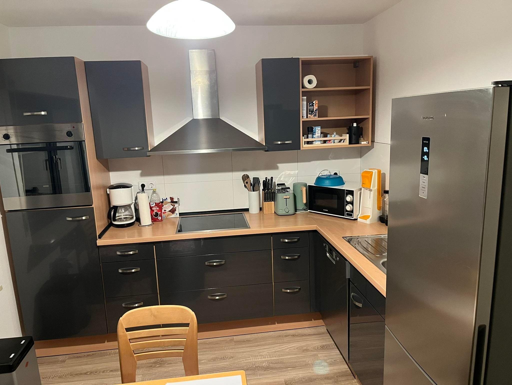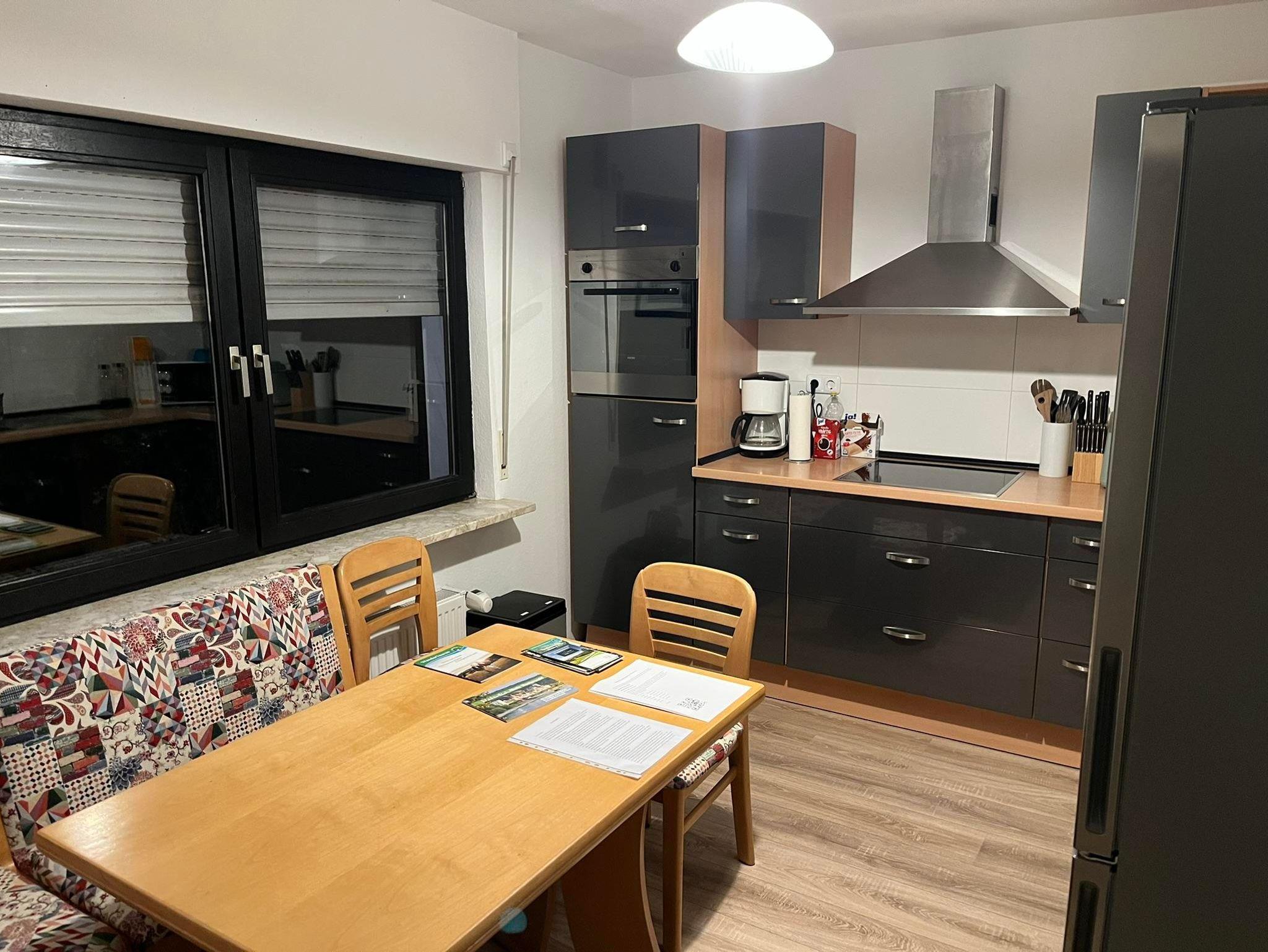 Euch steht eine moderne, geräumige Küche mit vollumfänglicher Einrichtung wie Geschirrspüler, große Kühl-/Gefrierkombination, Elektroherd, Backofen, Mikrowelle, und gemütlicher Sitzecke zur Verfügung, um den Urlaub möglichst autark zu verbringen.