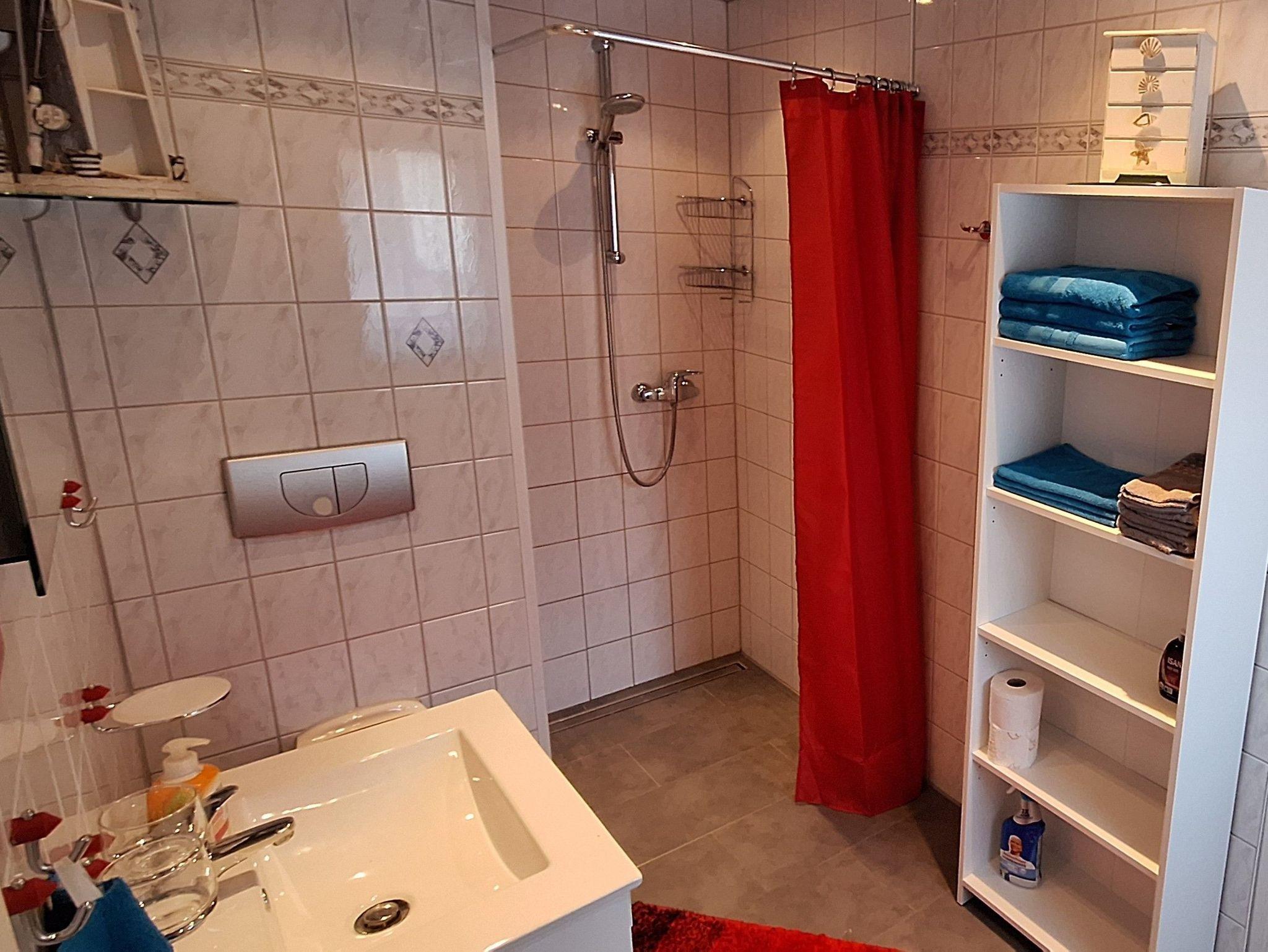Auf 66 qm² Wohnfläche stehen Ihnen für erholsame Tage im Erdgeschoss ein Bad mit ebenerdiger Dusche; ein Schlafzimmer mit einem Boxspringbett (1,80 m breit), im Obergeschoss eine komplett eingerichtete Küche sowie ein Wohnzimmer (Schlafcouch vorhanden) zur Verfügung.
