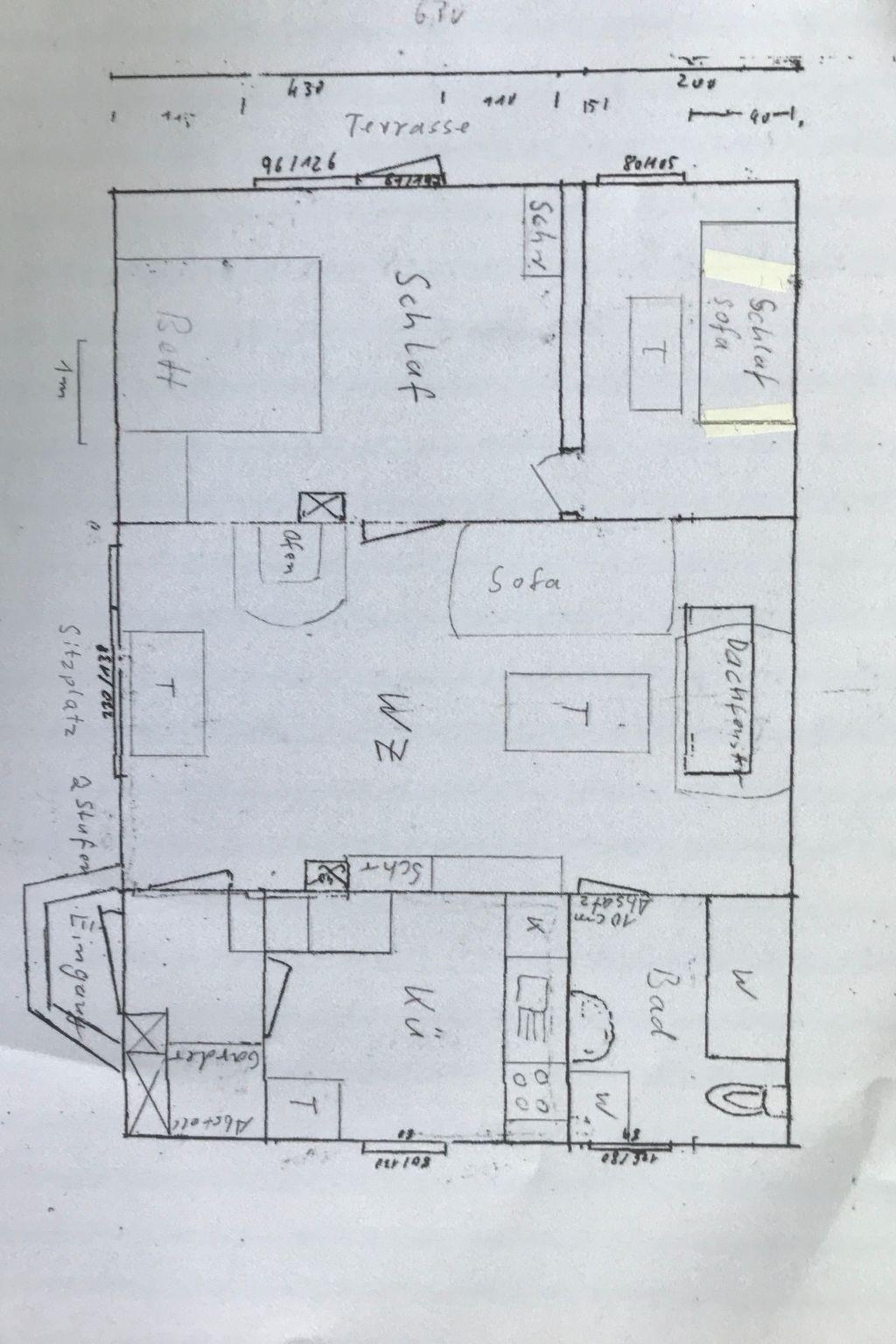 The house is located in the tranquil heath village of Suderburg (UNIVERSITY LOCATION) and has 60 m² of living space on the ground floor, spread over 2 1/2 bright, friendly rooms with two bedrooms, kitchen and bathroom/WC.