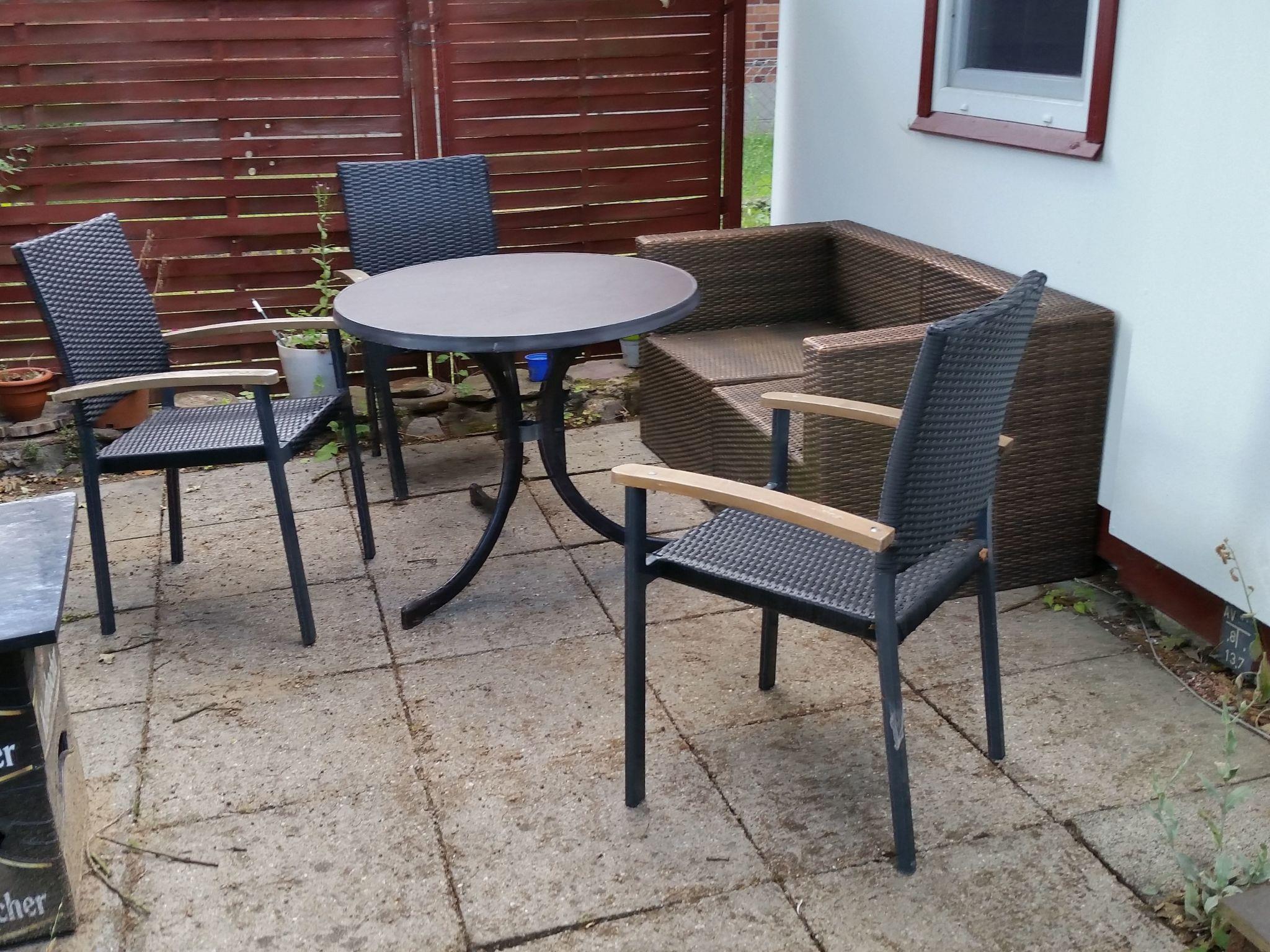 The terrace is equipped with garden furniture, parasol and two garden loungers. The property is fenced and therefore also suitable for children and dogs.