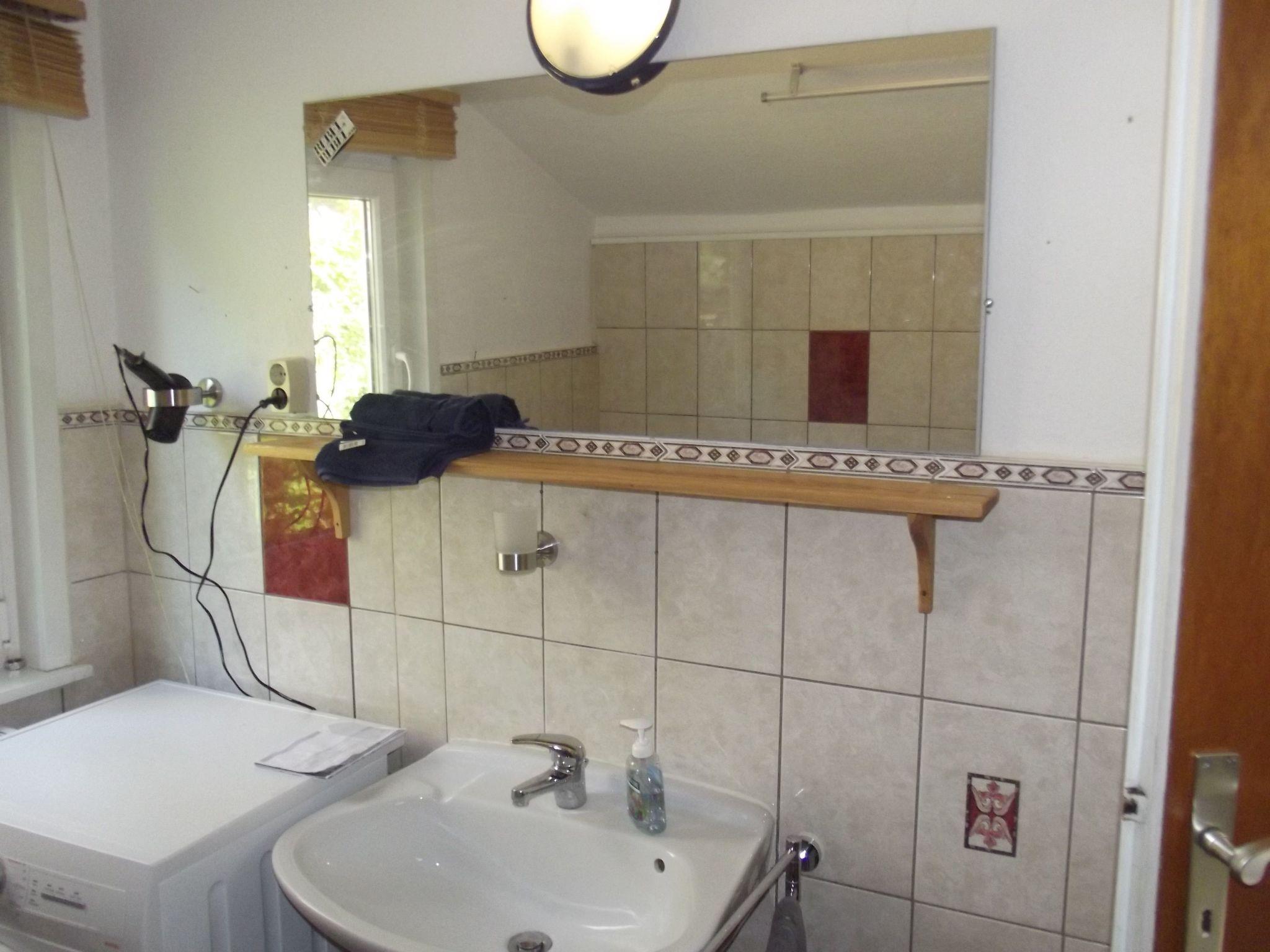 The house is about 60 m² in size and consists of the following rooms: A living room with fireplace, flatscreen TV, a bedroom with double bed, and a small room with sofa bed; a fully equipped kitchen with hob, oven, coffee machine, toaster, fridge with freezer compartment and dishwasher, as well as a small dining area; a bathroom with bathtub and shower curtain and a washing machine.