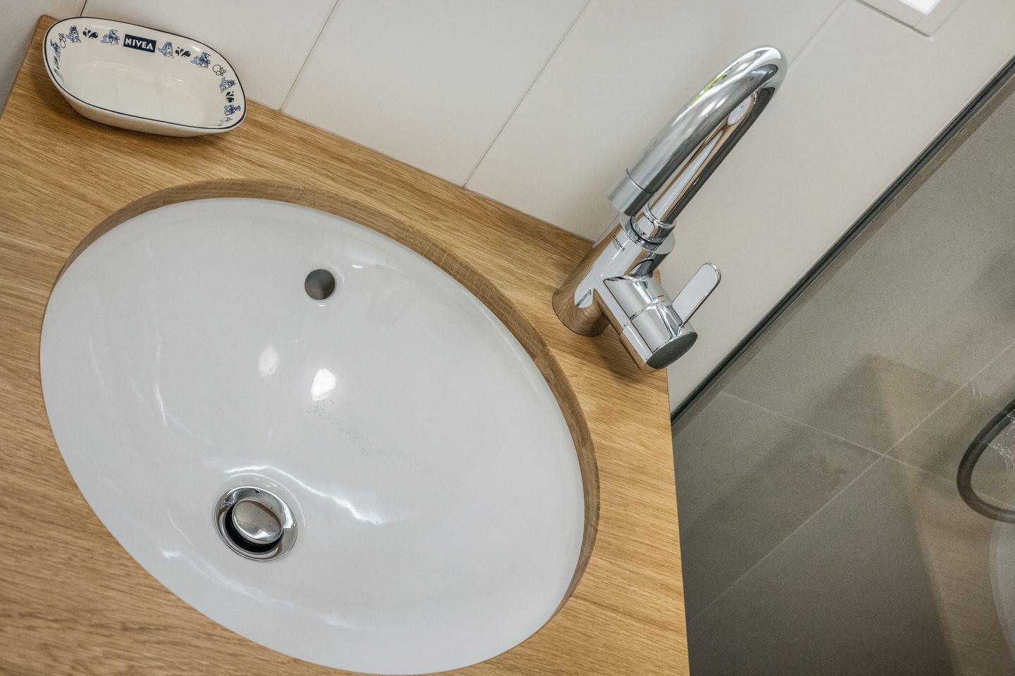 Bad: weißes Vollbad ( Badewanne nur als Dusche nutzbar) mit elektrischem Handtuchhalter