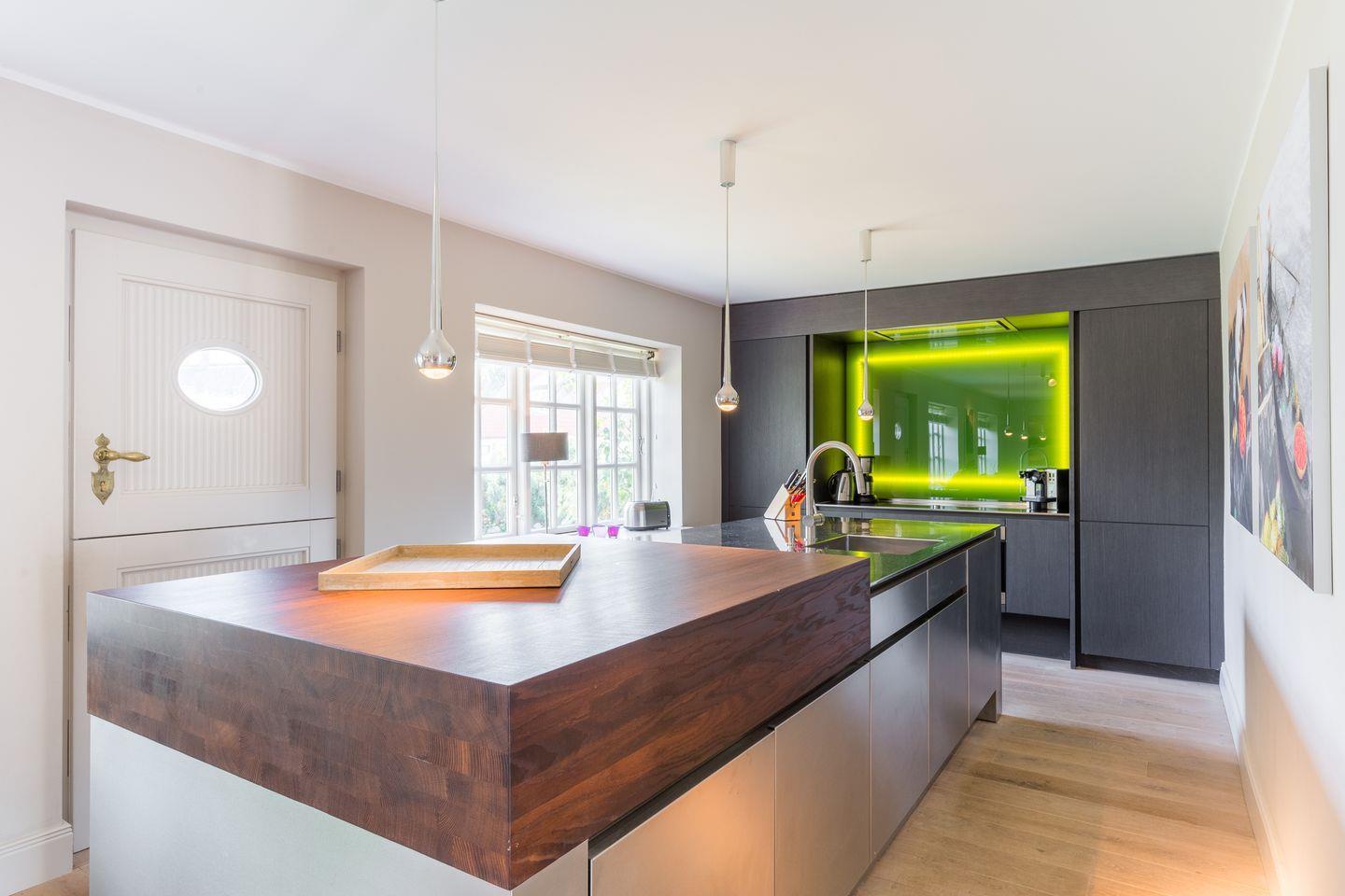 Großzügiges und sehr geschmackvoll designtes Entrée mit edlem Wohnbereich, Flat-TV, Blu-Ray Player und iPod-Dock. Futurisches Gourmet-Küchen-Ensemble mit Induktionsherd, und Geschirrspüler. Stilvoller Essbereich, atmosphärisch einer Landhaus-Wohnküche gleichend. Gäste-WC. Sehr aufwändig angelegter, geschützter und mit edlem Holz voll-verkleideter Innenhof mit Gartenmobiliar, Sauna mit Ambiente-Licht, Außendusche und Loungebereich. (Gartenmobiliar u. Loungebereich ca. von April-Oktober nutzbar.). Garage für Ihr Fahrzeug mit direktem Haus- und Saunazugang.