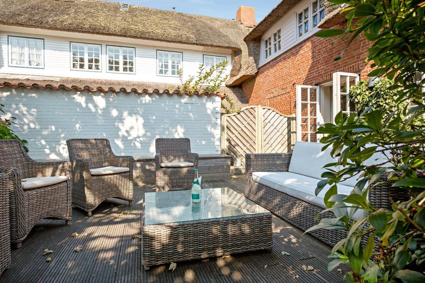 Luxuriöses Teilhaus unter Reet im Erd-, Ober- und Untergeschoss mit ca. 240 qm Wohnnutzfläche für bis zu 7 Personen in bester Lage Keitums, dem historsichen Dorfkern.
