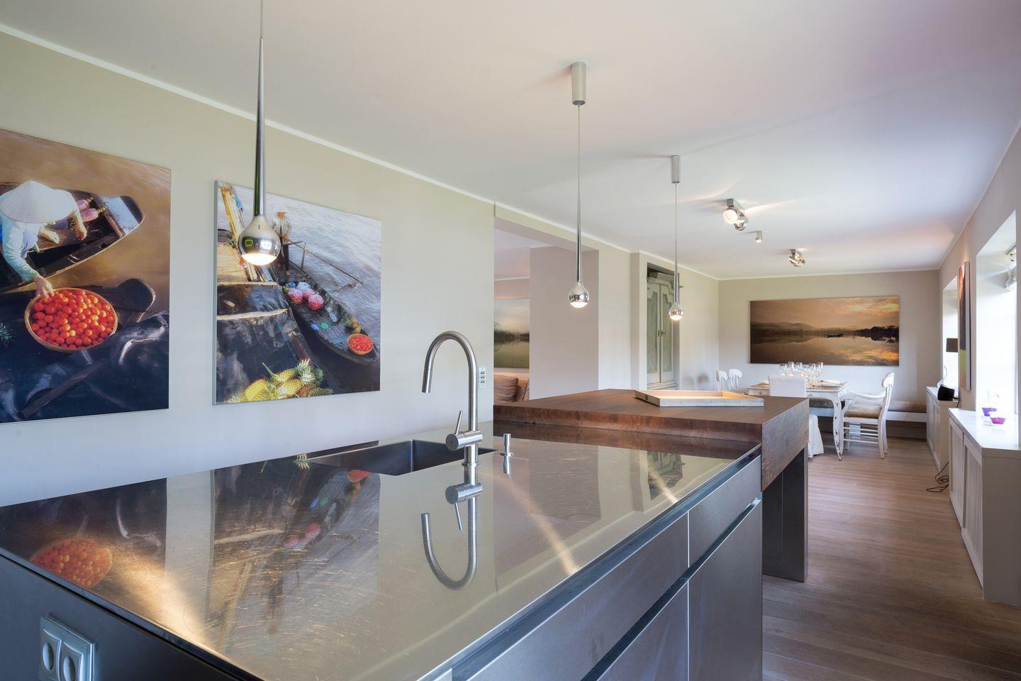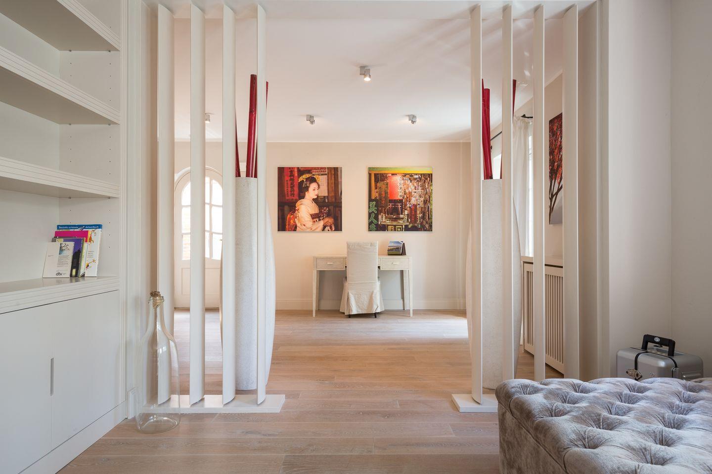 Dieses Interior-Design werden auch Sie als keinen Widerspruch wahrnehmen, sondern als eine äußerst geschmackvolle Synthese aus Leichtigkeit und Geborgenheit, die niemals zu dick aufträgt, sondern durch Stil und Eleganz sich vornehm zurückhält. Die original und vom Besitzer eigens aus Asien hand-importierten Zeichnungen im Obergeschoss, als auch die fantastischen Fotos und Bilder des Erdgeschossbereichs werden Sie atmosphärisch verzaubern.