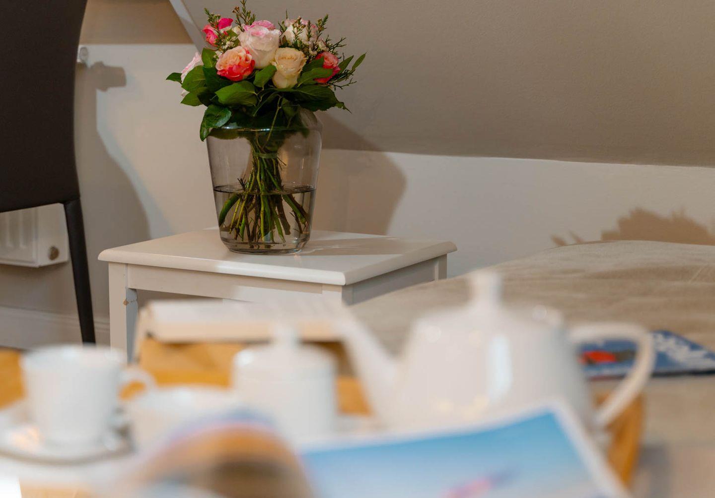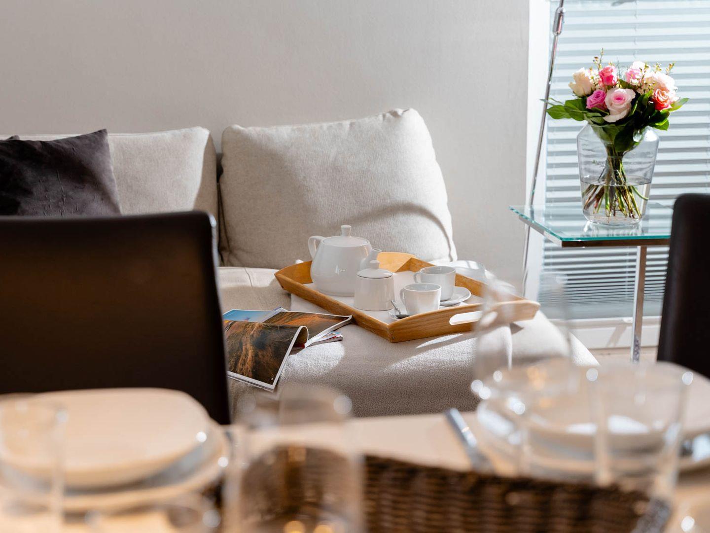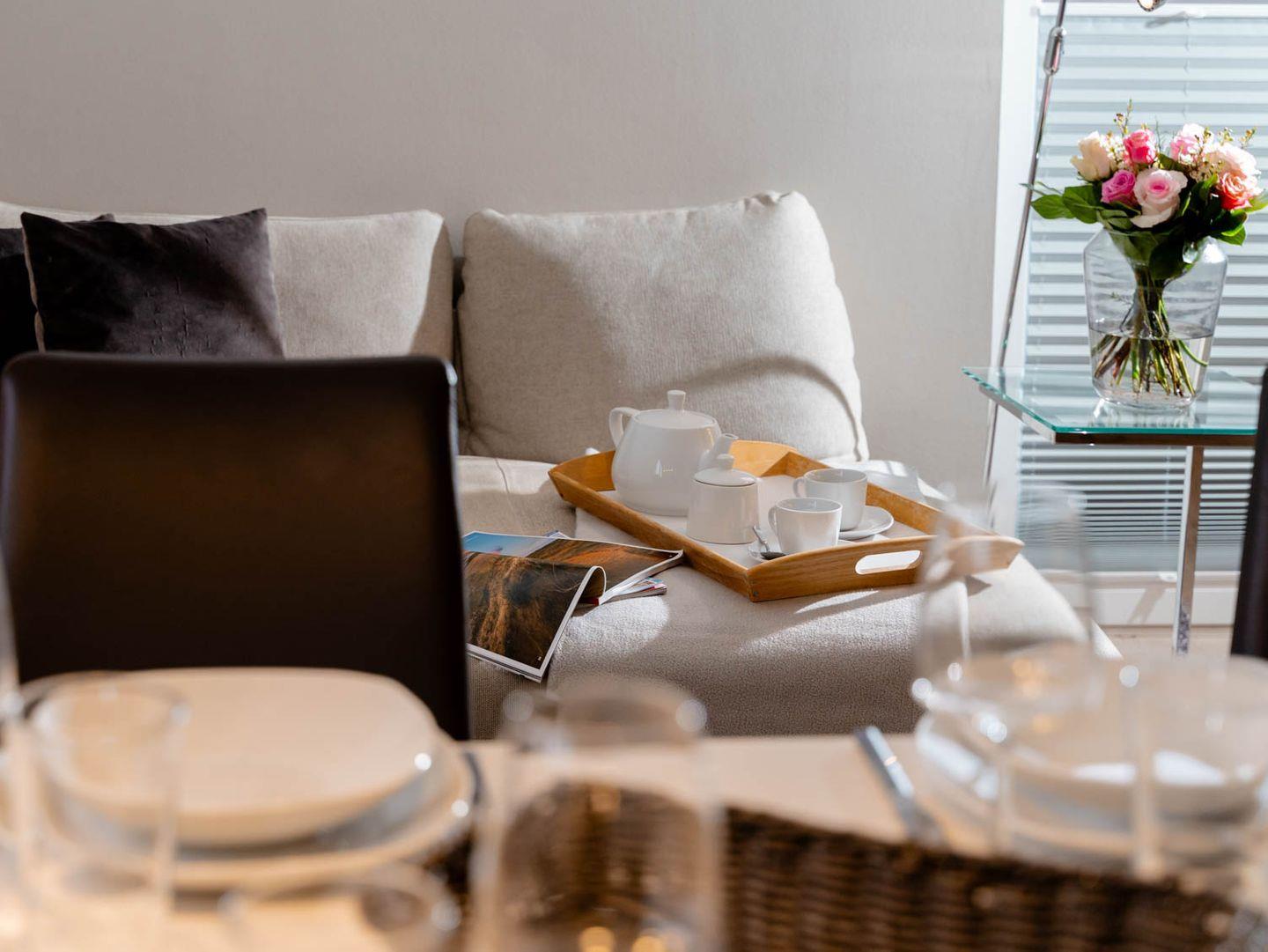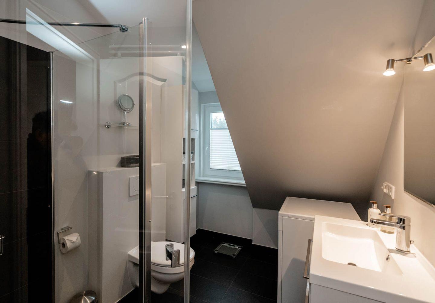 Moin, moin, willkommen im großzügigen Ferien-Appartement "Buhne 73", das Platz und allen Komfort für bis zu 6 Personen bietet und am allersüdlichsten Ende von Wenningstedt zu Hause ist. Das heißt natürlich genaugenommen, dass diese 4-Zimmer-Ferienwohnung ganz in der Nähe des kleinen beschaulichen Nordwäldchens liegt, das Wenningstedt und Westerland trennt, die Inselmetropole und der Strand also auch nicht weit entfernt sind. Die Wohnung liegt im Obergeschoss und Dachgeschoss eines vor Kurzem erbauten 5-Parteien-Hauses, ist nach Westen ausgerichtet und hat sogar einen eigenen Balkon mit attraktiver Brüstung aus Glas. Überhaupt liegt dieses Haus nicht nur sehr schön etwas abseits mit Blick auf Pferdewiese und Wäldchen, sondern ist auch noch besonders eingerichtet: sehr klar, hell, luftig und ohne überflüssigen Firlefanz, kurz gesagt – inselfrisch und wirklich schön. Drei Doppelbetten, eine vollausgestattete Küche, die kommunikativ in den Wohnbereich integriert ist, ein Bad und ein Extra-WC mit Waschbecken sowie eine Waschmaschine inklusive Trockner und ein eigener Parkplatz machen "Buhne 73" zu einem perfekten Partner für Ihre Ferien. Woher der Name kommt? Buhnen, das waren die alten und wie sich heute zeigt unnützen Wellenbrecher aus Beton oder Holz, die jetzt an der Westküste entfernt werden und die 73 verdankt die Wohnung schlicht ihrer Hausnummer.