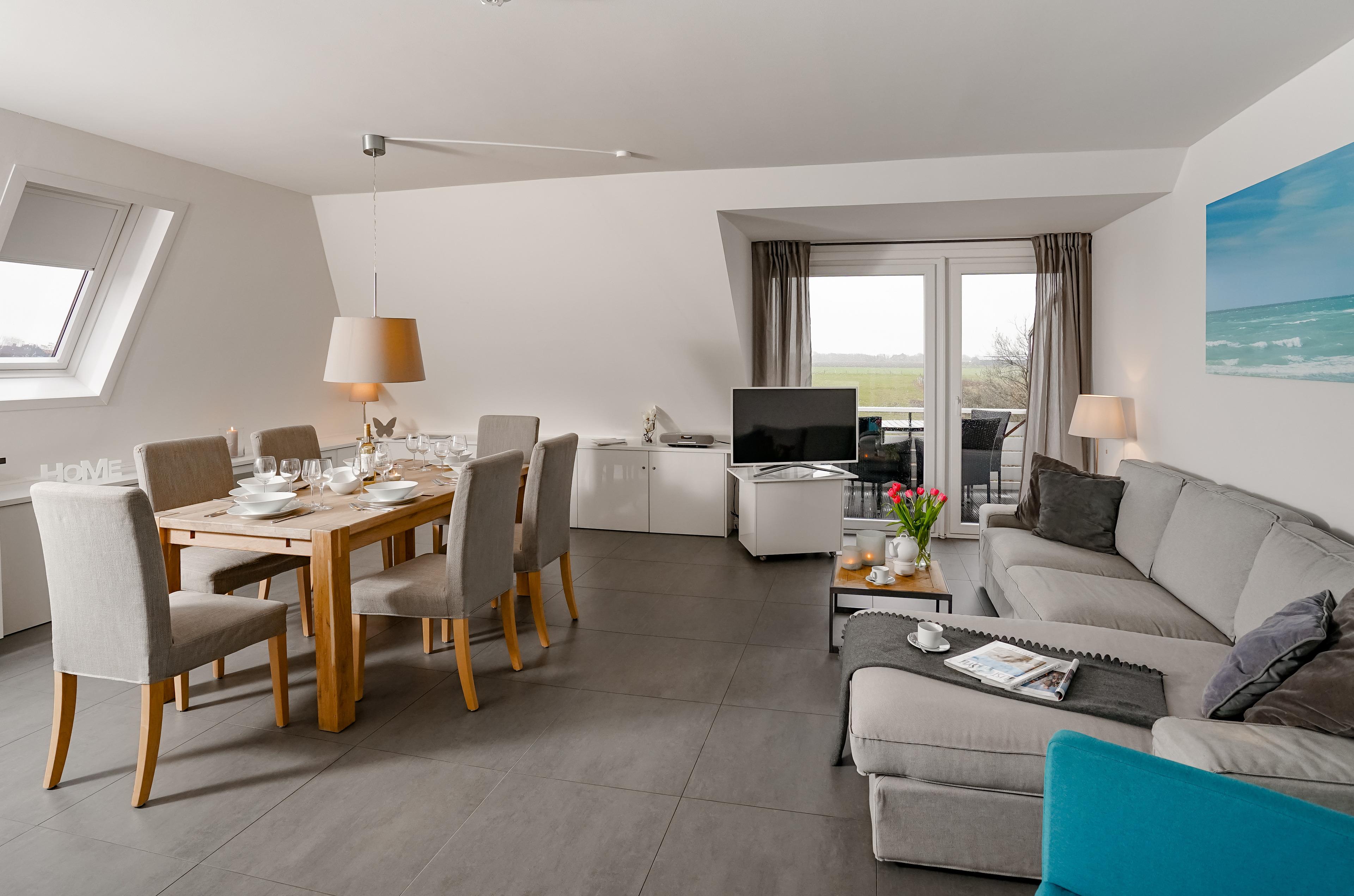 Willkommen im Appartement "Möwe5" in Morsum auf Sylt mit einem traumhaften Blick auf die Wiesen!