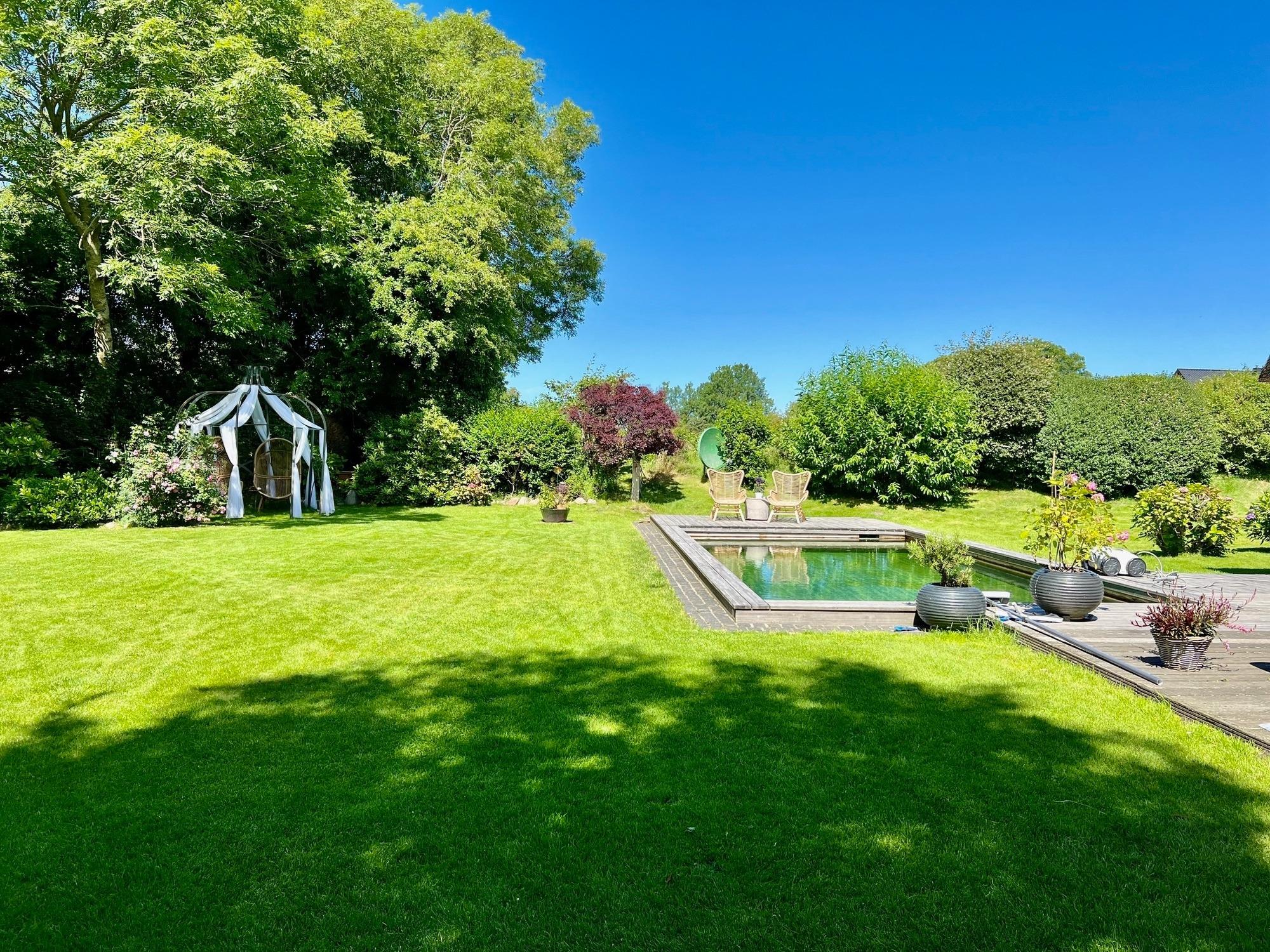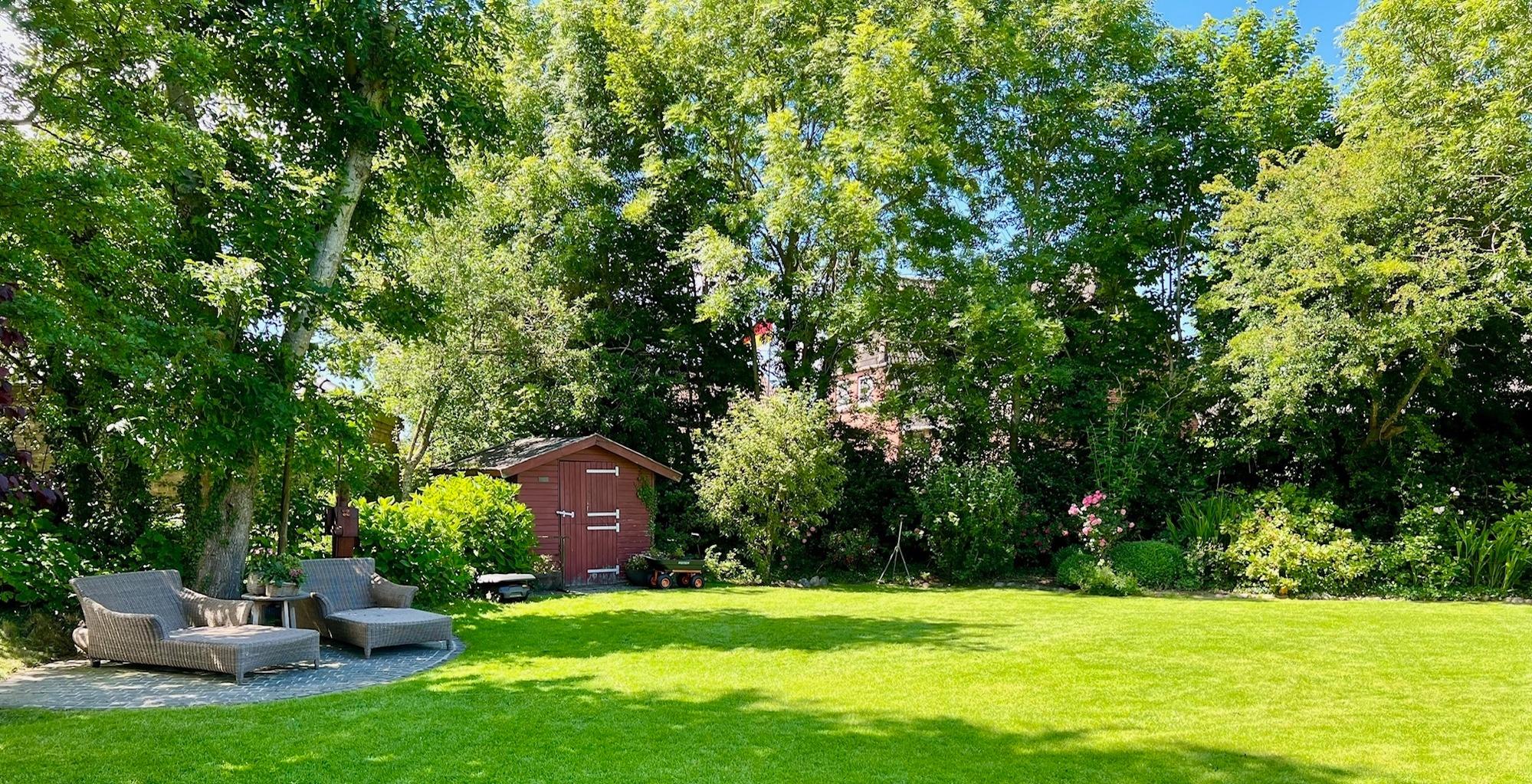 Im Außenbereich darf der große wunderschöne Garten gern mitbenutzt werden.