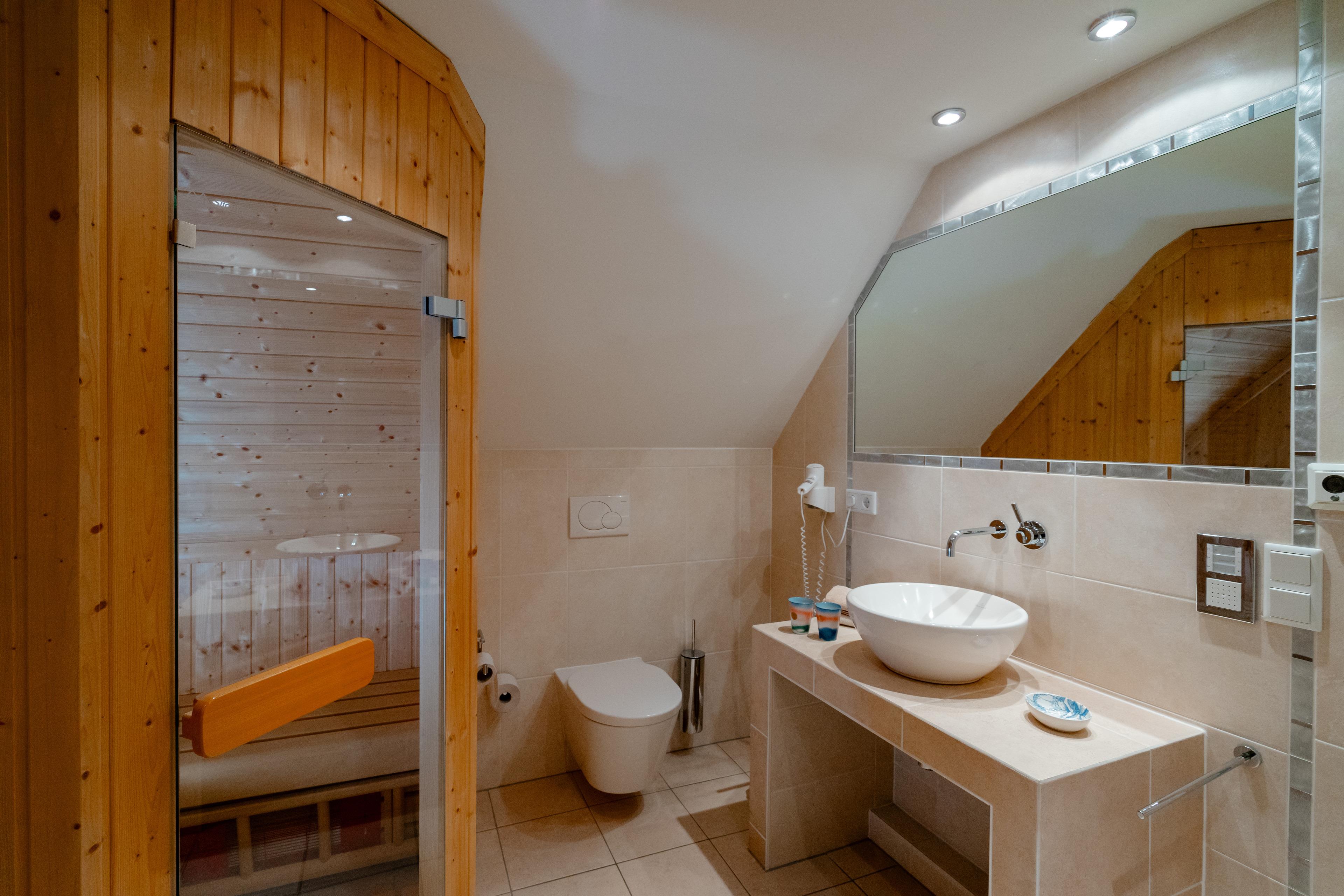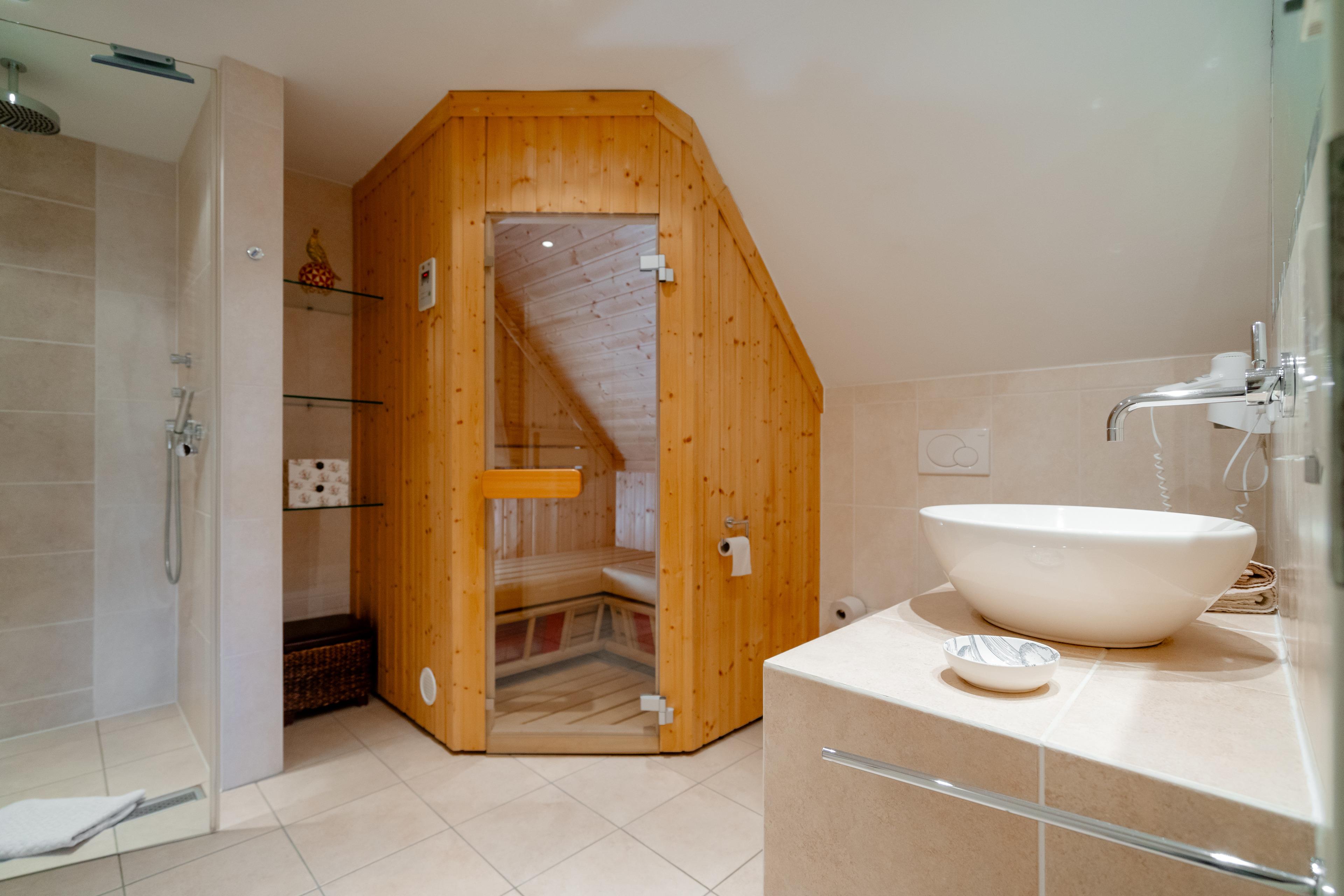 Das App. bietet Platz für bis zu 2 Personen und verfügt über 1 Schlafzimmer, 1 Badezimmer mit Sauna, 1 gemütliches Wohnzimmer mit Küchenzeile und Essecke.