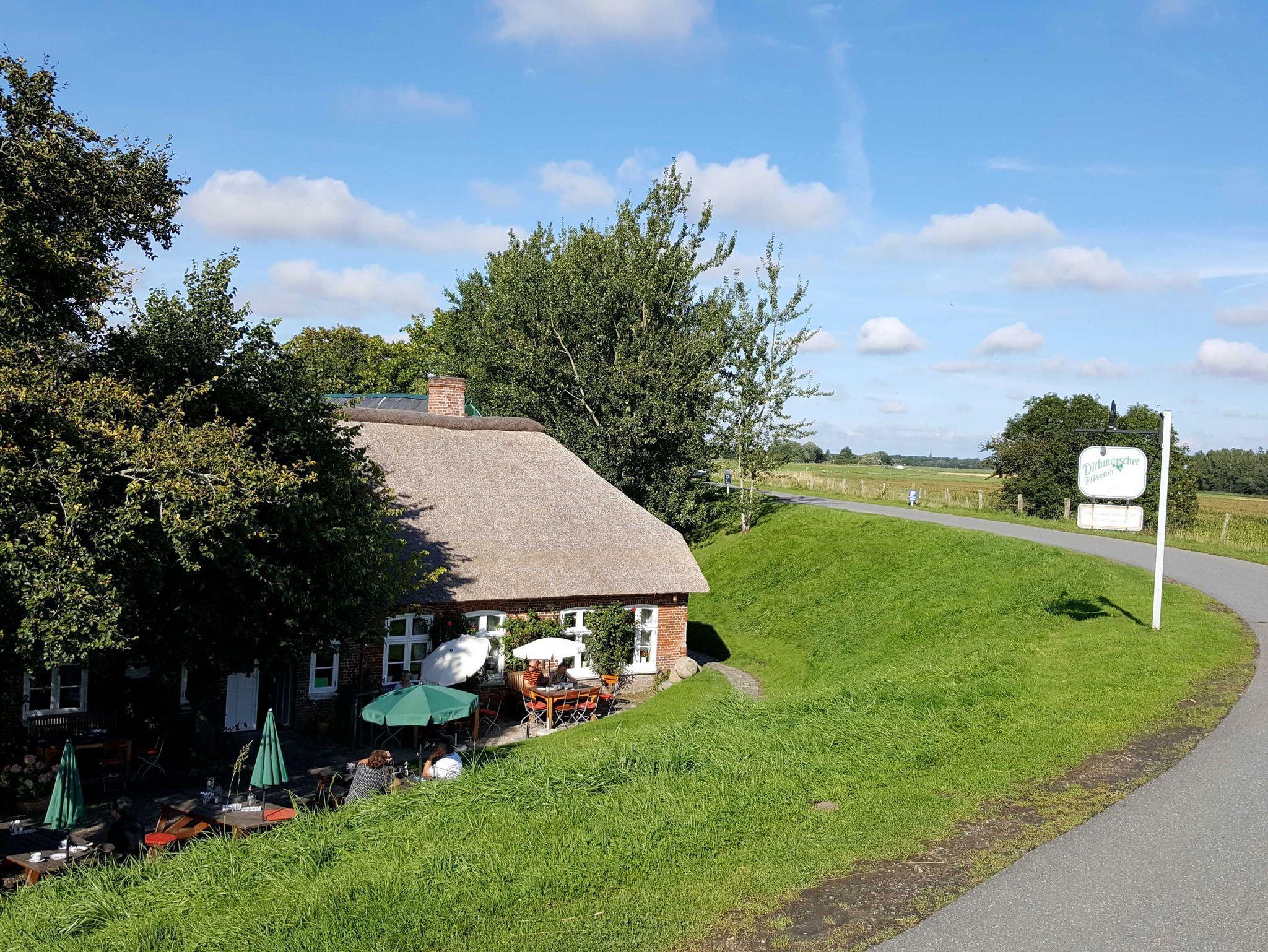 Die weit über Eiderstedt bekannte historische Schankwirtschaft Wilhelm Andresen ist nur 50m entfernt und lockt mit köstlichem Kaffee und Kuchen oder einem deftigen Nordsee-Krabbenbrot mit Spiegelei und Bratkartoffelgerichten. Dort kann man sogar heiraten. (Leider ist der Gasthof derzeit geschlossen!) Einkaufsmöglichkeiten gibt es im per Auto 5 Minuten entfernten Garding. In der Saison gibt es frische Erdbeeren und Lammfleisch im Erdbeerhof Kühl, auf dem Weg nach Garding.