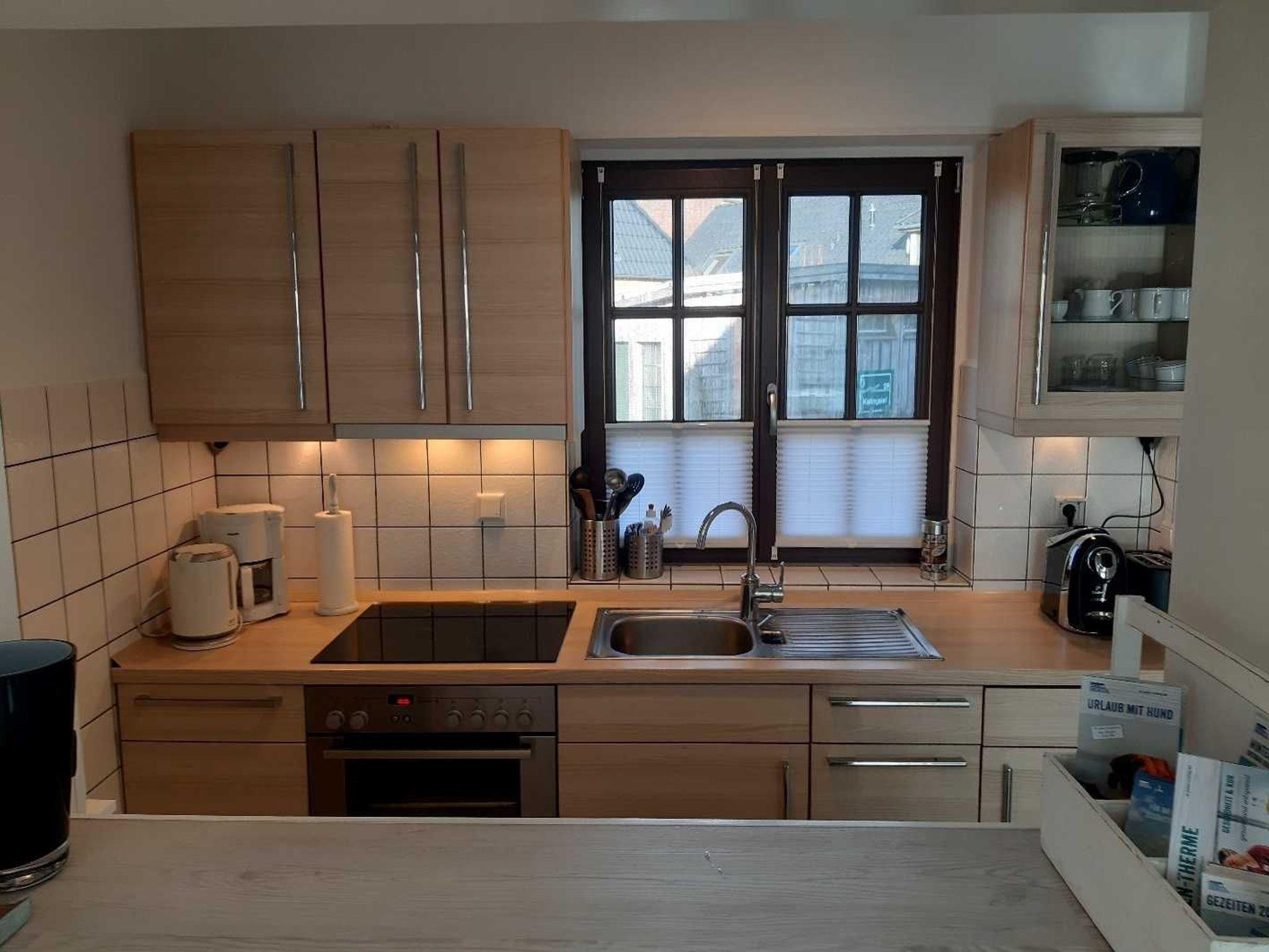 SEEWOLKE N° 3 besteht aus einem Wohn-/Esszimmer mit neuem modernem Schlafsofa (1,20x 2,00 m), einem Schlafzimmer mit Doppelbett, einer voll ausgestatteten offenen Küche mit Fenster mit 4 Platten Ceranfeld-Herd, Backofen, Geschirrspüler, Kühlschrank, Gefrierschrank und Mikrowelle sowie ausreichend hochwertigem Geschirr und Gläsern, Töpfen etc., einem Flur, einem modernisierten Duschbad mit Waschmaschine und einem praktischen Abstellraum. Gegen störende Mücken in der Nacht befinden sich an vielen Fenstern Insektenschutzrahmen.