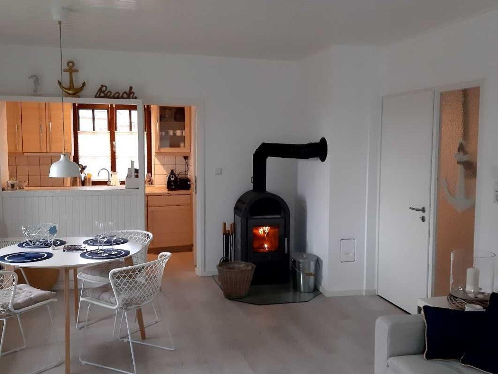 Die Seewolke N°3 verfügt über 2 Zimmer, moderne Ausstattung, schönes Duschbad, moderne Küche, Flur, Abstellraum. Kuschelig wird es Herbst und Winter mit dem Kaminofen! Die Terrasse hat einen Strandkorb.