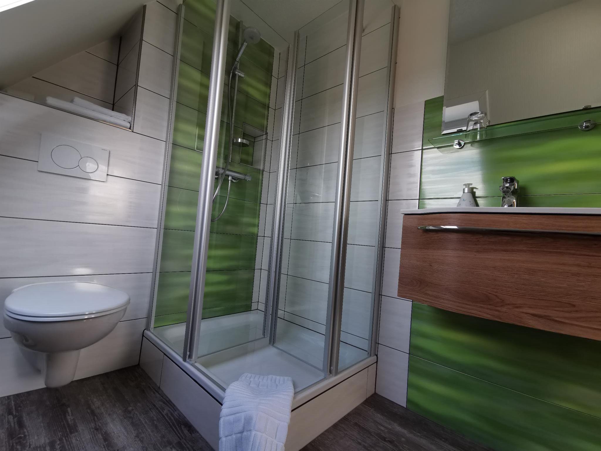 Doppelzimmer ca. 14 m² groß mit großer Dusche und WC
