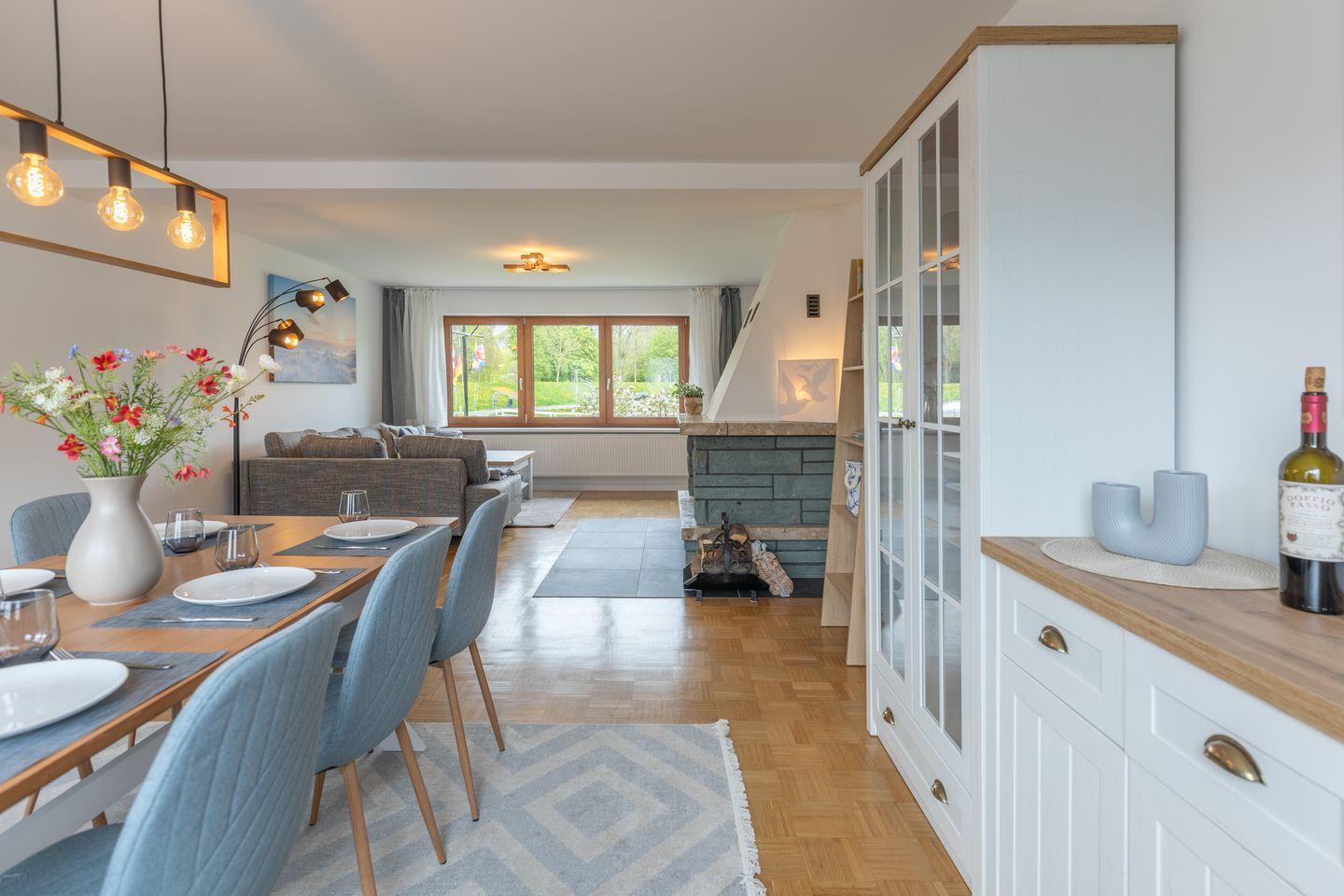 Die voll ausgestattete, separate Küche verfügt über moderne Geräte wie Backofen, Kühlschrank mit Gefrierfach, Geschirrspüler, Kaffeemaschine und Wasserkocher. Auch an Geschirr und Kochutensilien ist alles vorhanden. Ein direkter Zugang zur Terrasse ermöglicht Ihnen, die Mahlzeiten bei schönem Wetter auch draußen mit Blick auf den Tönninger Hafen zu genießen.