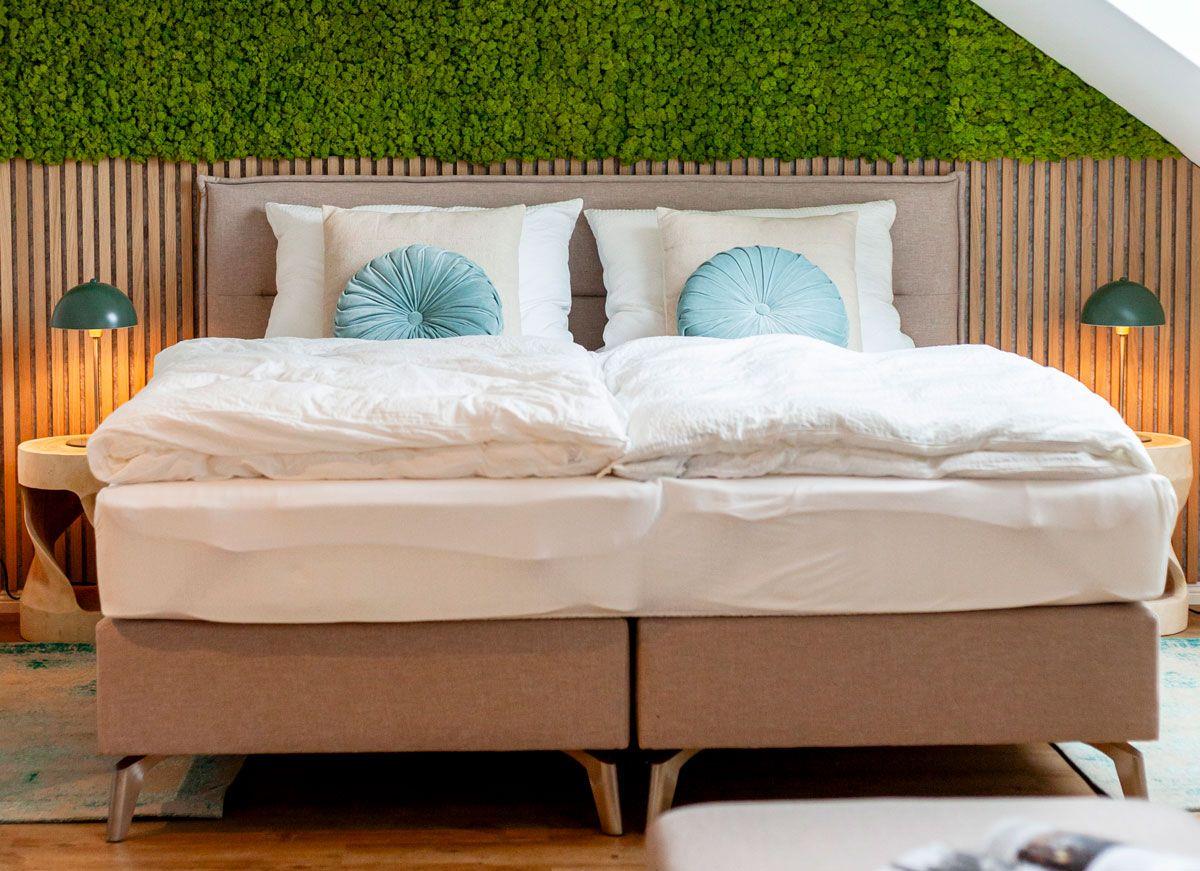 Unsere Ferienwohnung „Mikkey“ ist für 2-4 Personen ausgelegt. Zur Verfügung stehen ein super gemütliches Doppelbett (1,80 x 2 Meter) und ein bequemes Schlafsofa für zwei zusätzliche kleine Gäste.