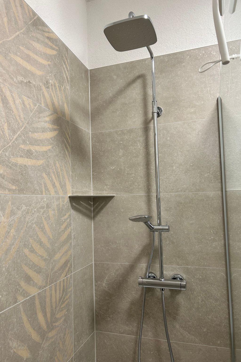 Inside the flat you will find a stylish interior, characterised by light-flooded rooms, clean lines and warm colour accents that create an inviting atmosphere. The bedroom is furnished with a comfortable double bed that promises to make every night a restful experience. The modern bathroom has a refreshing rain shower, ideal for unwinding after a day of exploring. The open-plan kitchen and adjoining dining area provide the perfect setting to start the day with a cosy breakfast or end it with a glass of wine, while the living room offers a relaxing retreat for reading or unwinding.
