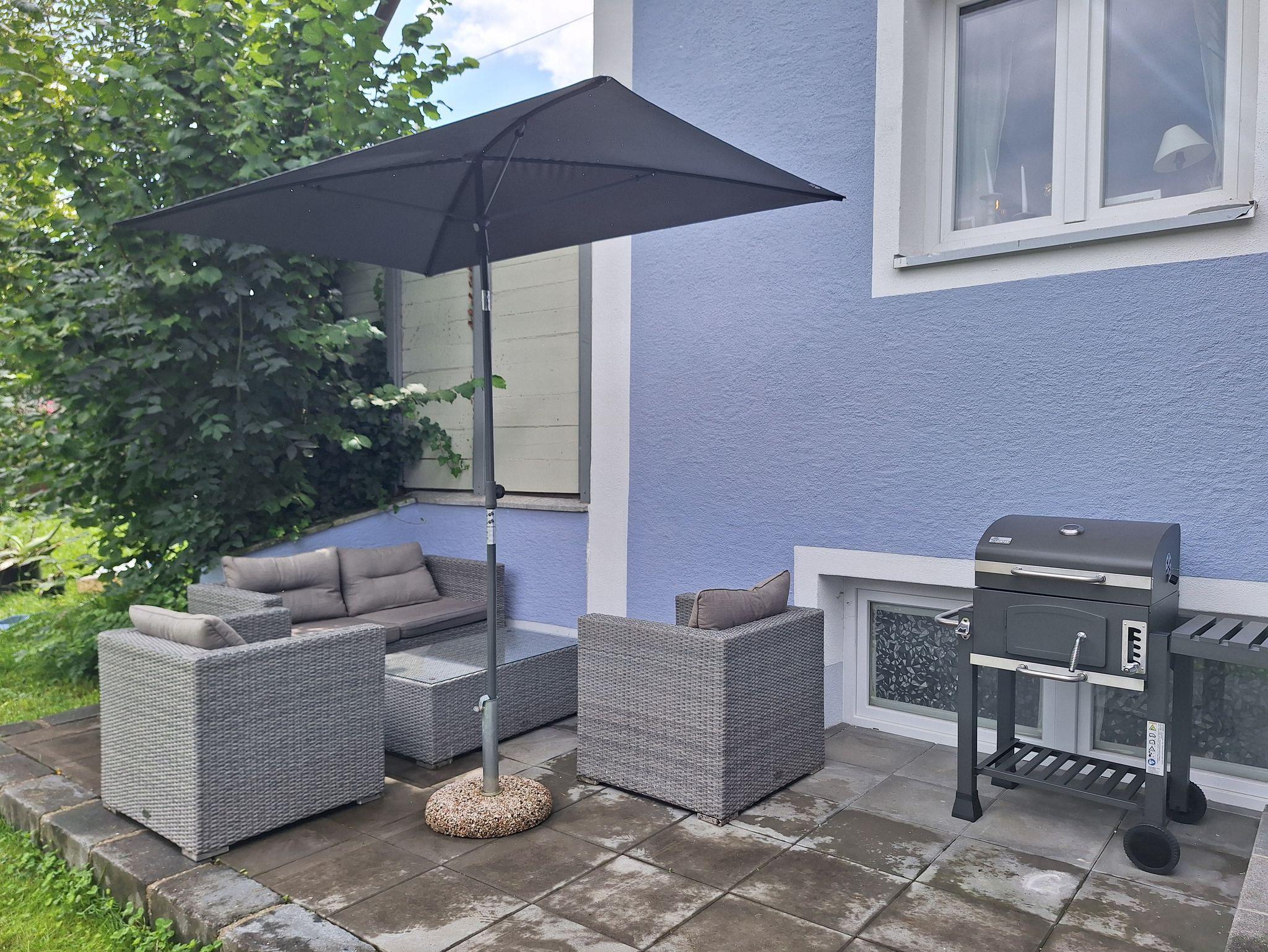 Die Gäste profitieren von kostenlosem WLAN, einer großen Garage und einem Privatparkplatz, die vor Ort verfügbar sind. Die komplett neu eingerichtete 110 m² Ferienwohnung punktet mit zwei Schlafzimmern für 4 Personen (2 Doppelbetten 180x200 cm, eines davon teilbar), einem großen Wohnzimmer, einen Flachbild-TV, einer Musikanlage (DaB+) sowie einer gut ausgestatteten Küchenzeile mit Geschirrspüler, Kühlschrank mit Tiefkühlfach, Backofen, Mikrowelle, Kaffeemaschine, Toaster, Wasserkocher, Handmixer und Stabmixer. Das Badezimmer ist mit einer Badewanne, Dusche, einer Waschmaschine, einem Haartrockner und einem Schminkspiegel ausgestattet. In dieser Ferienwohnung werden Handtücher, Geschirrtücher und Bettwäsche zur Verfügung gestellt. Ein Balkon, ein privater Gartenanteil mit Terrasse und einer Möglichkeit zum Grillen stehen zur Verfügung. 4 Sonnenliegen, ein Wäscheständer sowie eine Rattangarnitur mit Sonnenschirm stehen ebenfalls bereit. Ein Bügelbrett, ein Bügeleisen und ein Venillator sind im Abstellraum vorhanden, ein Babybett und ein Hochstuhl sind auf Anfrage vorhanden.