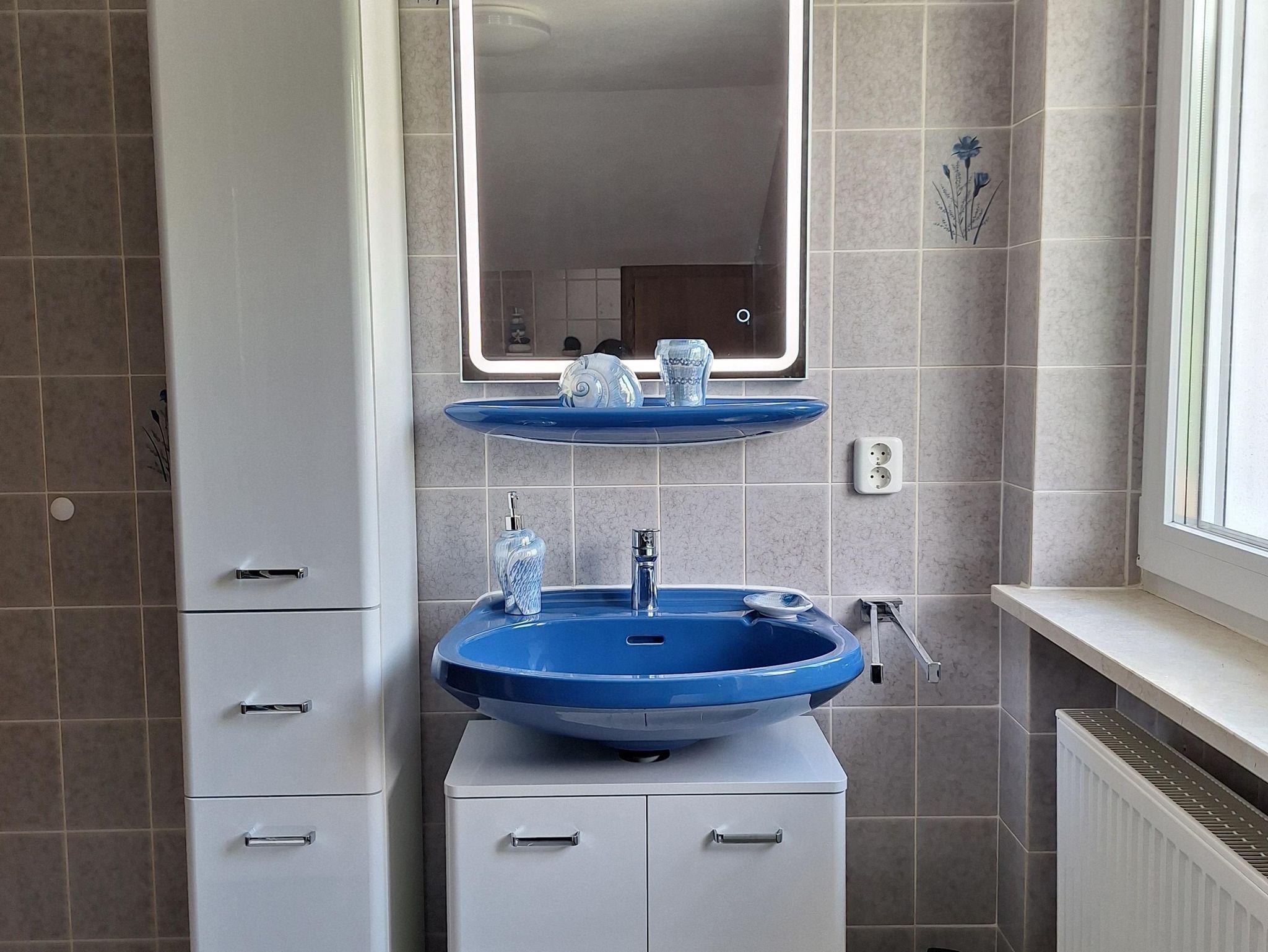 Große, sonnige Ferienwohnung mit neuer Einrichtung, 2 Schlafzimmer, 1 Wohnzimmer, 1 Küche, 1 Vorzimmer mit Garderobe, Ganzkörperspiegel und Schuhregal, 1 Bad, 1 Abstellraum mit Regal.