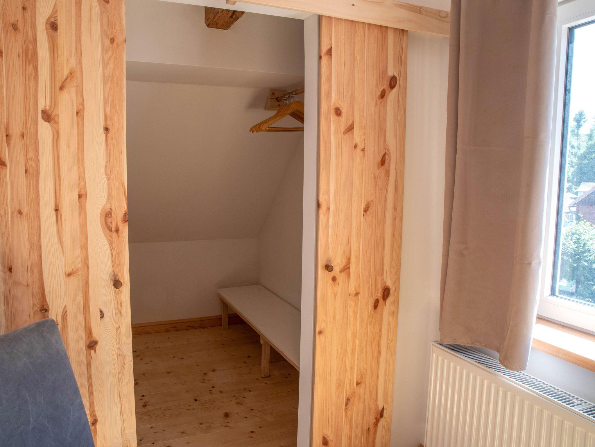 Das Haus bietet Platz für bis zu 6 Personen. Es unterteilt sich in drei großzügige Schlafzimmer, ein gemütliches Wohnzimmer und einer separaten Küche sowie zwei Bädern und einem separatem WC. In jedem Schlafzimmer befindet sich ein Kleiderschrank und ein begehbarer Kleiderschrank im großen Schlafraum im Dachgeschoss.