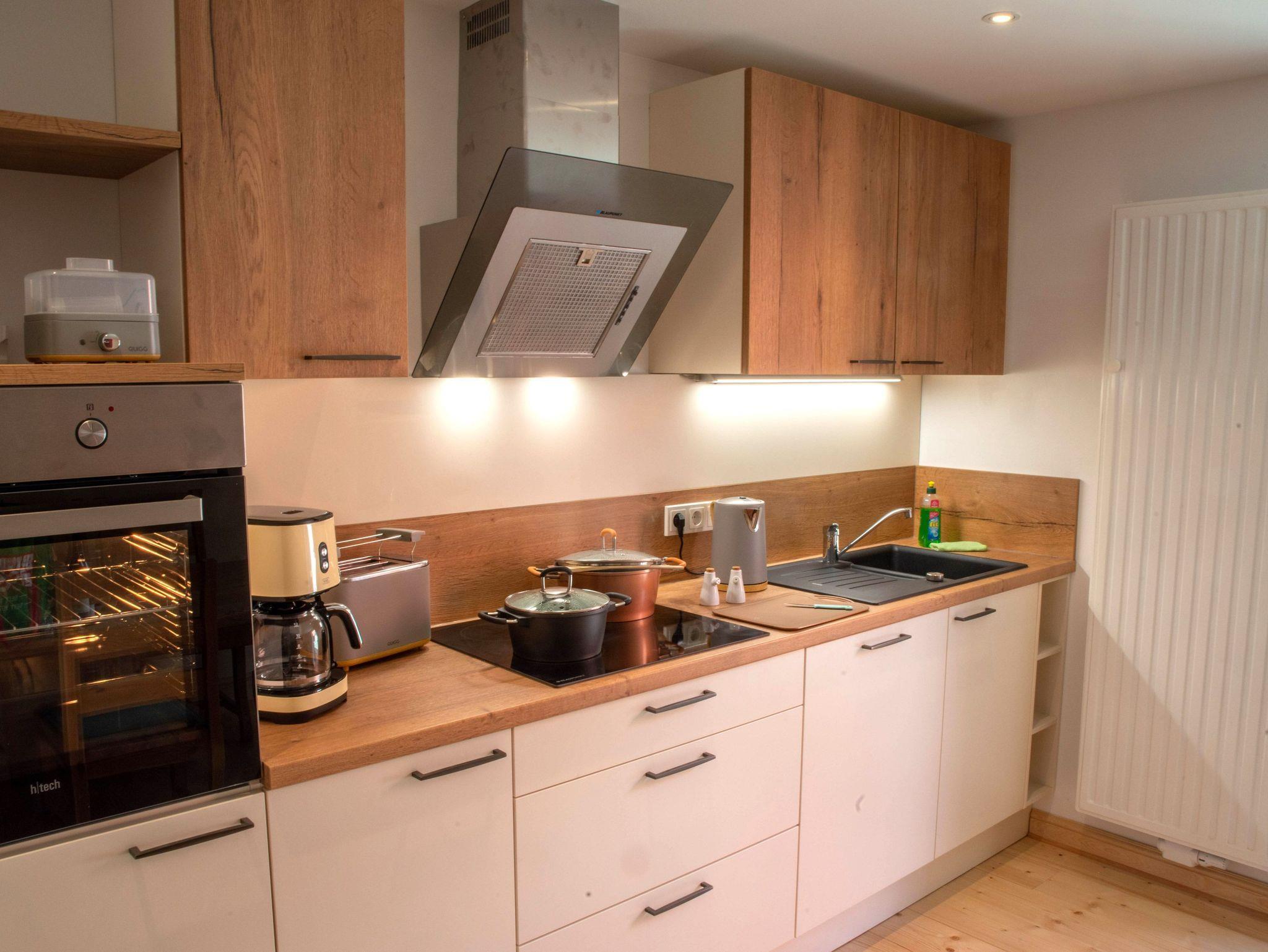 - voll ausgestattete Küche mit Geschirrspüler, Kaffeemaschine, Toaster, Eierkocher